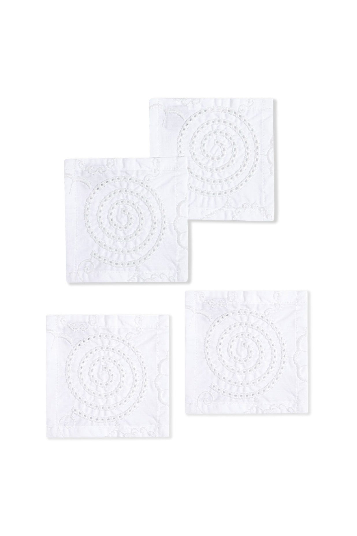 Curva coaster set features four elegantly designed poplin coasters. With beautiful embroidery, this set enhances your table's aesthetic while providing a stylish touch to your dining experience.