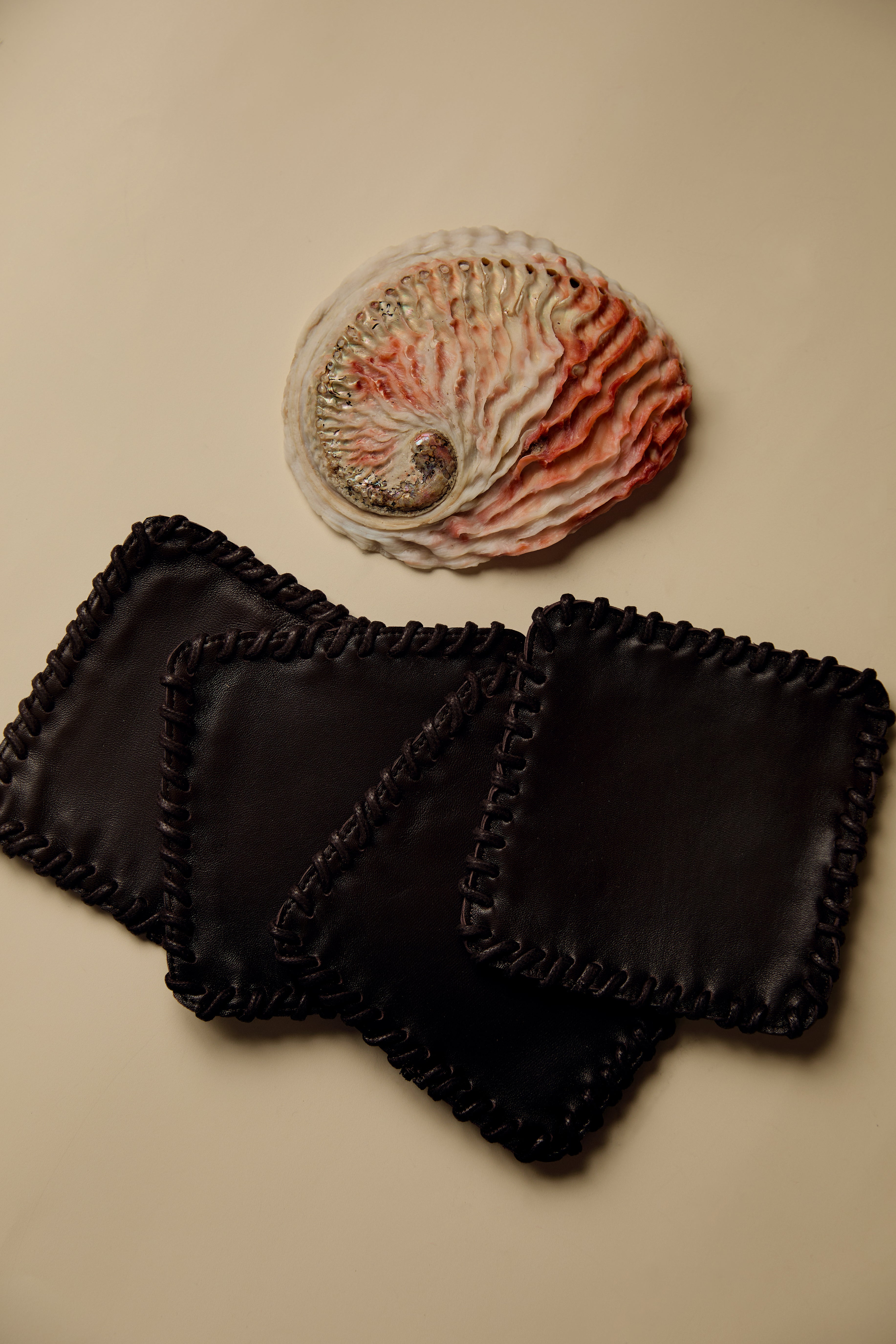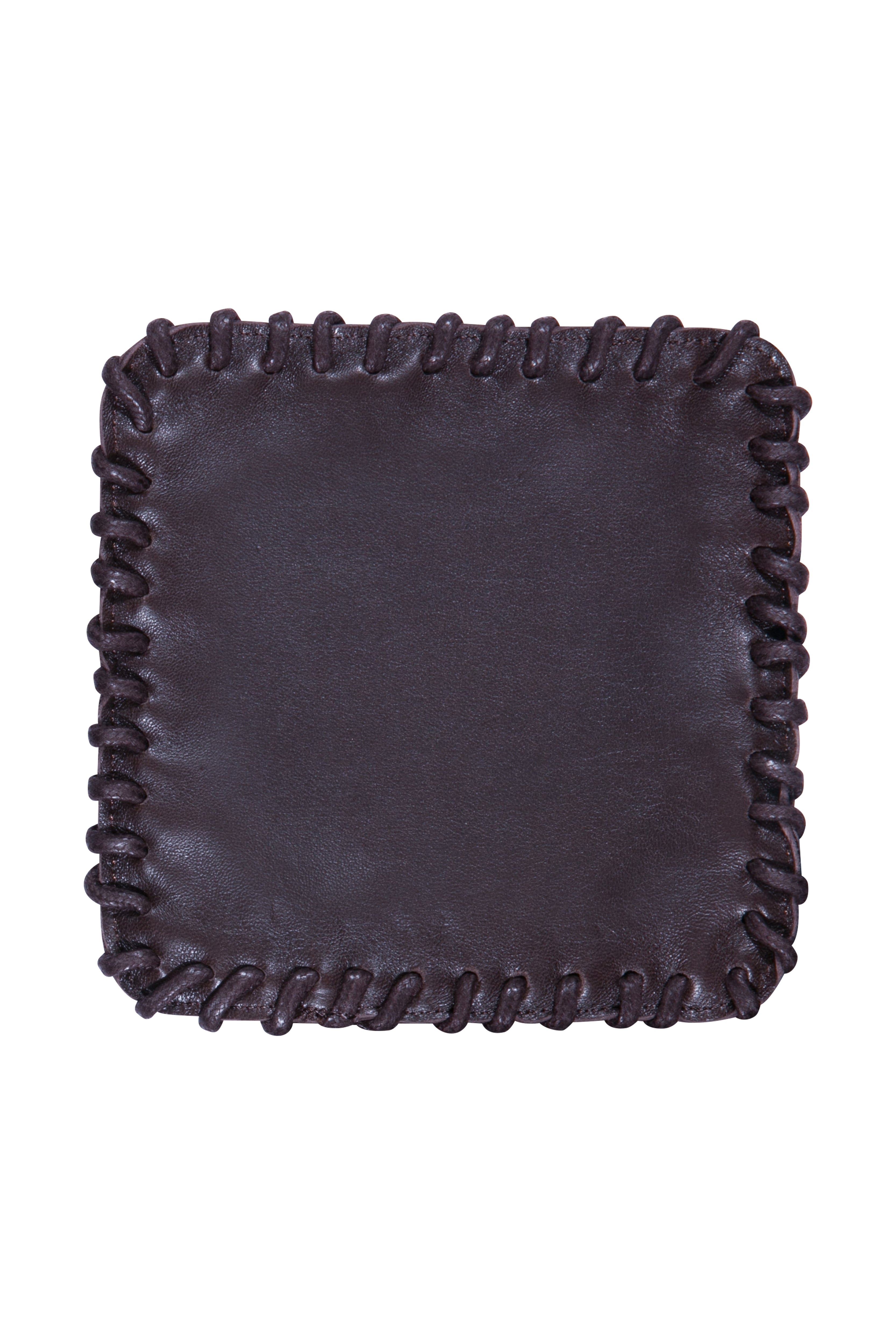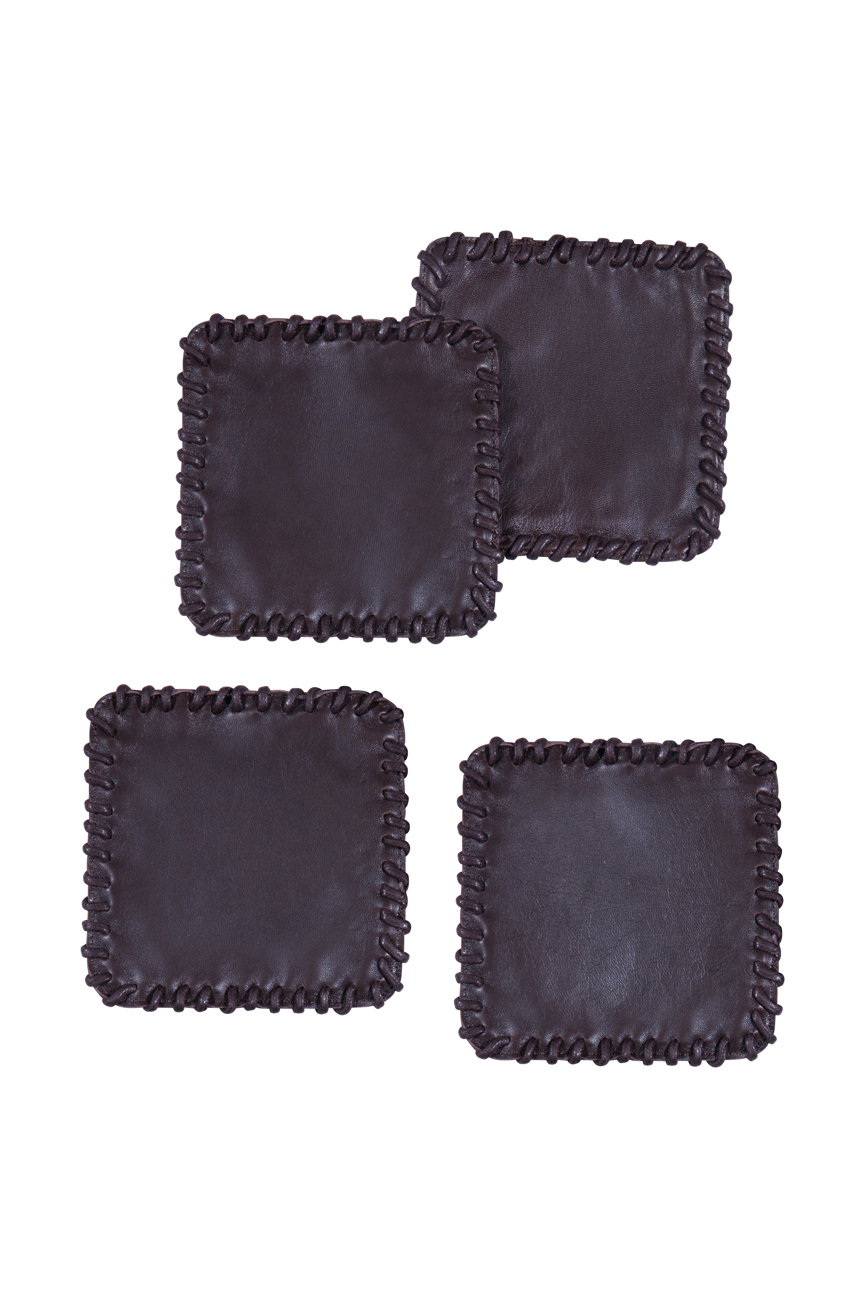 Devon Coaster Set in dark brown stands out with its leather texture and hand-stitched border. Sold as a set of 4, they are designed to complement both rustic and modern interiors, adding understated elegance to any tabletop.