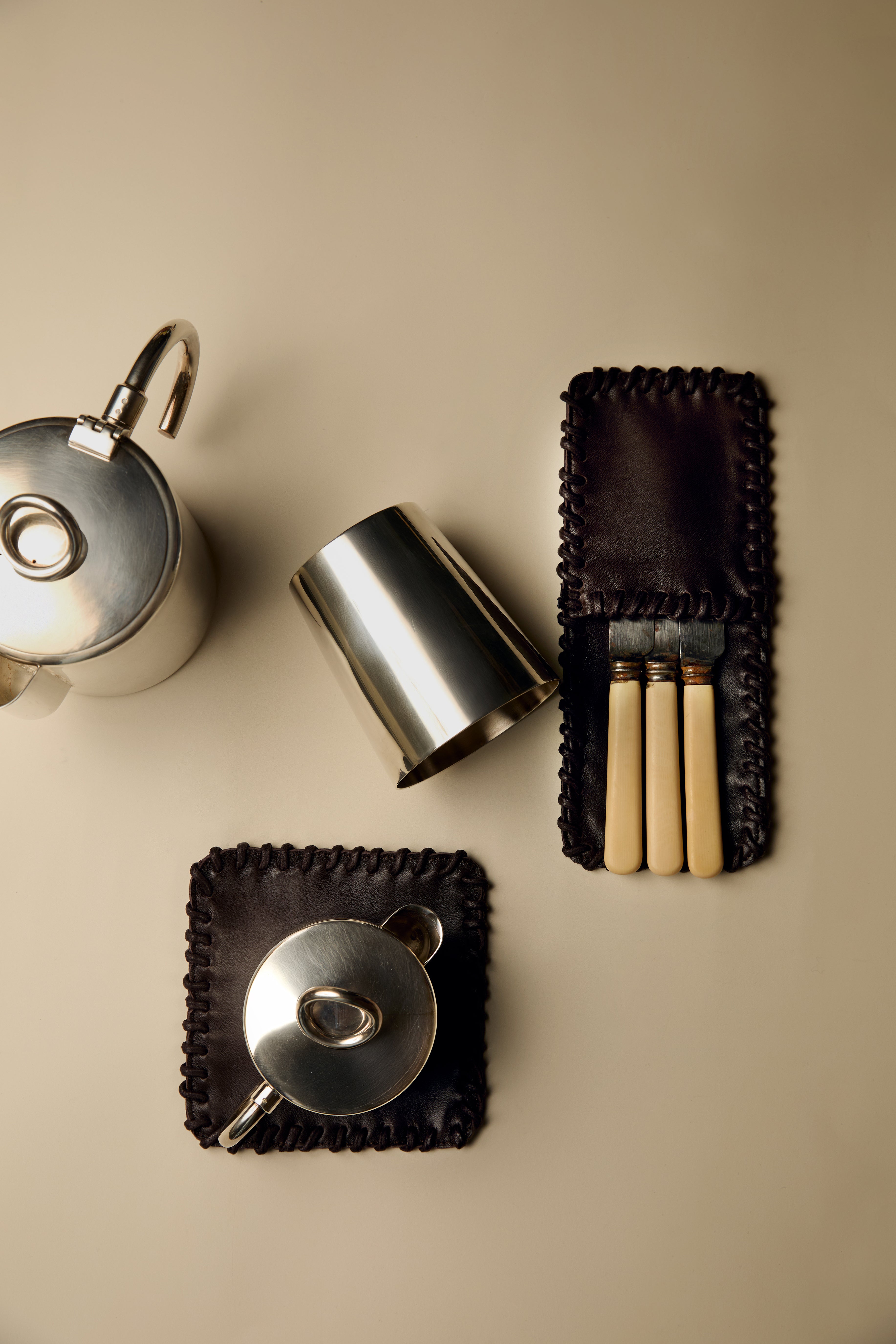 Devon Cutlery Pouch pairs the richness of dark brown leather with neatly finished edges for a sleek dining accessory. Compact yet stylish, it holds utensils securely, making table settings feel both organized and elevated.