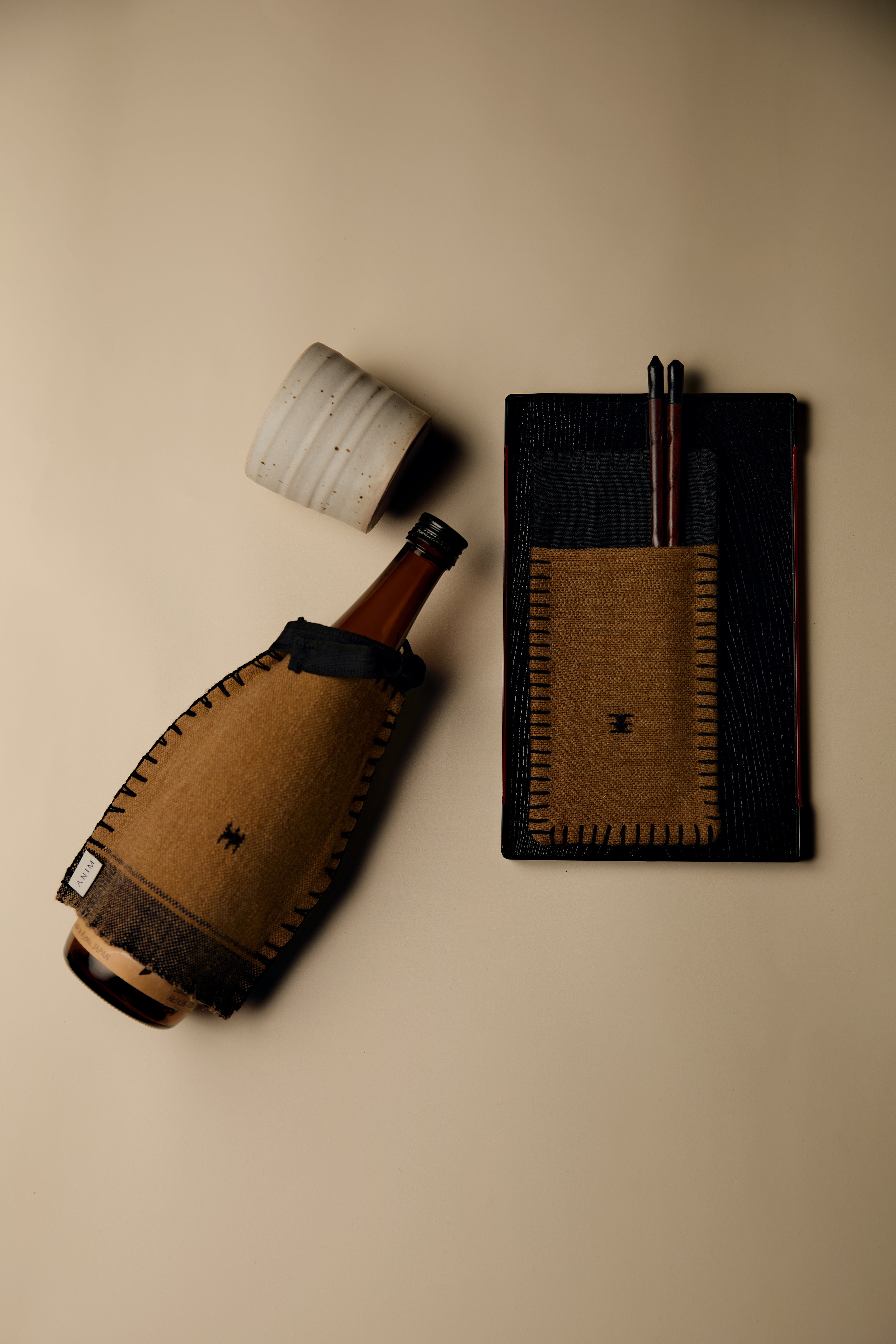 Ehra Cutlery Pouch in beige and brown offers an elegant way to present utensils, with bold stitch accents adding visual interest. Its compact size makes it perfect for both casual meals and formal table settings.