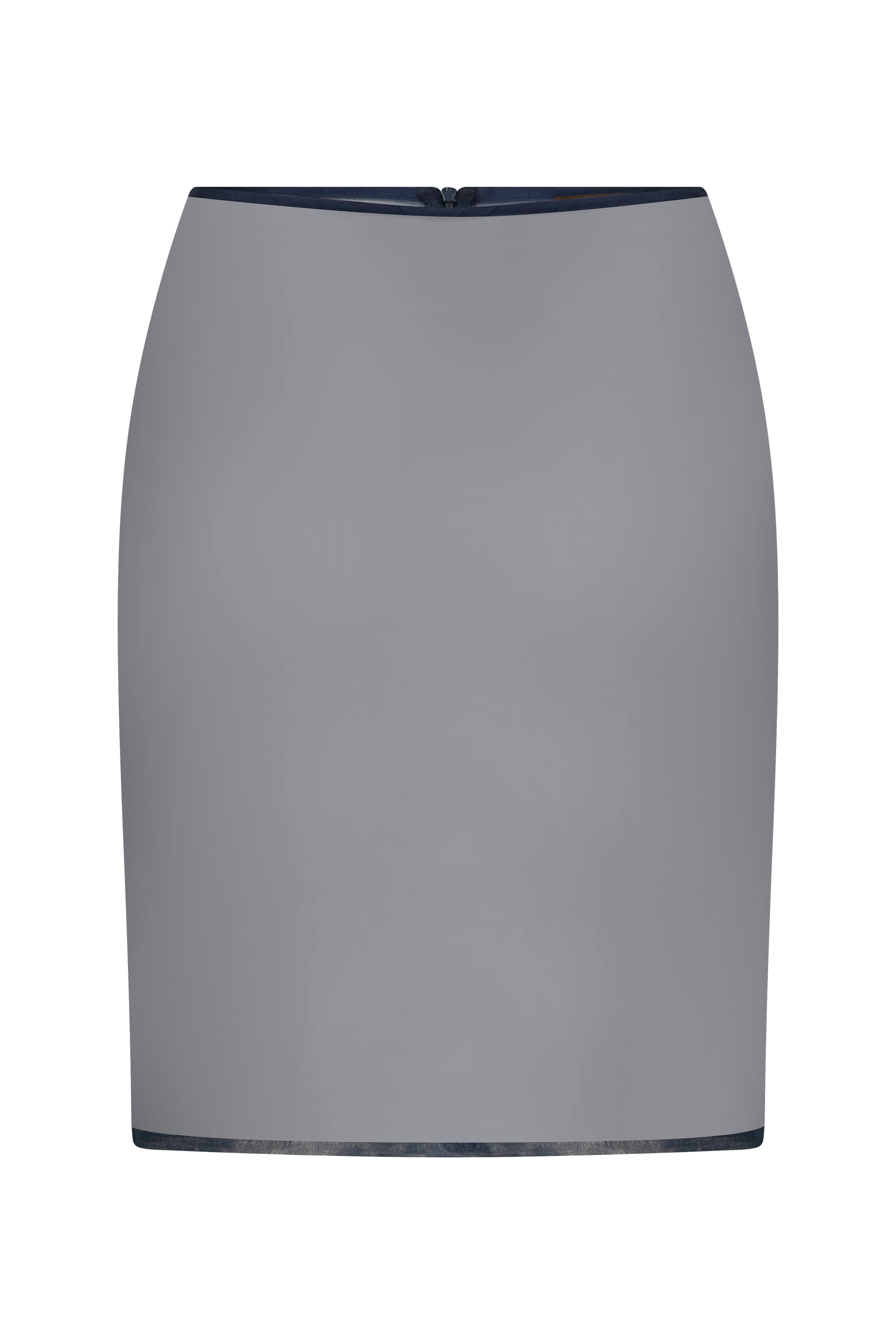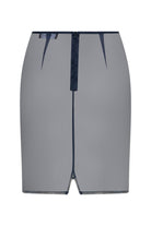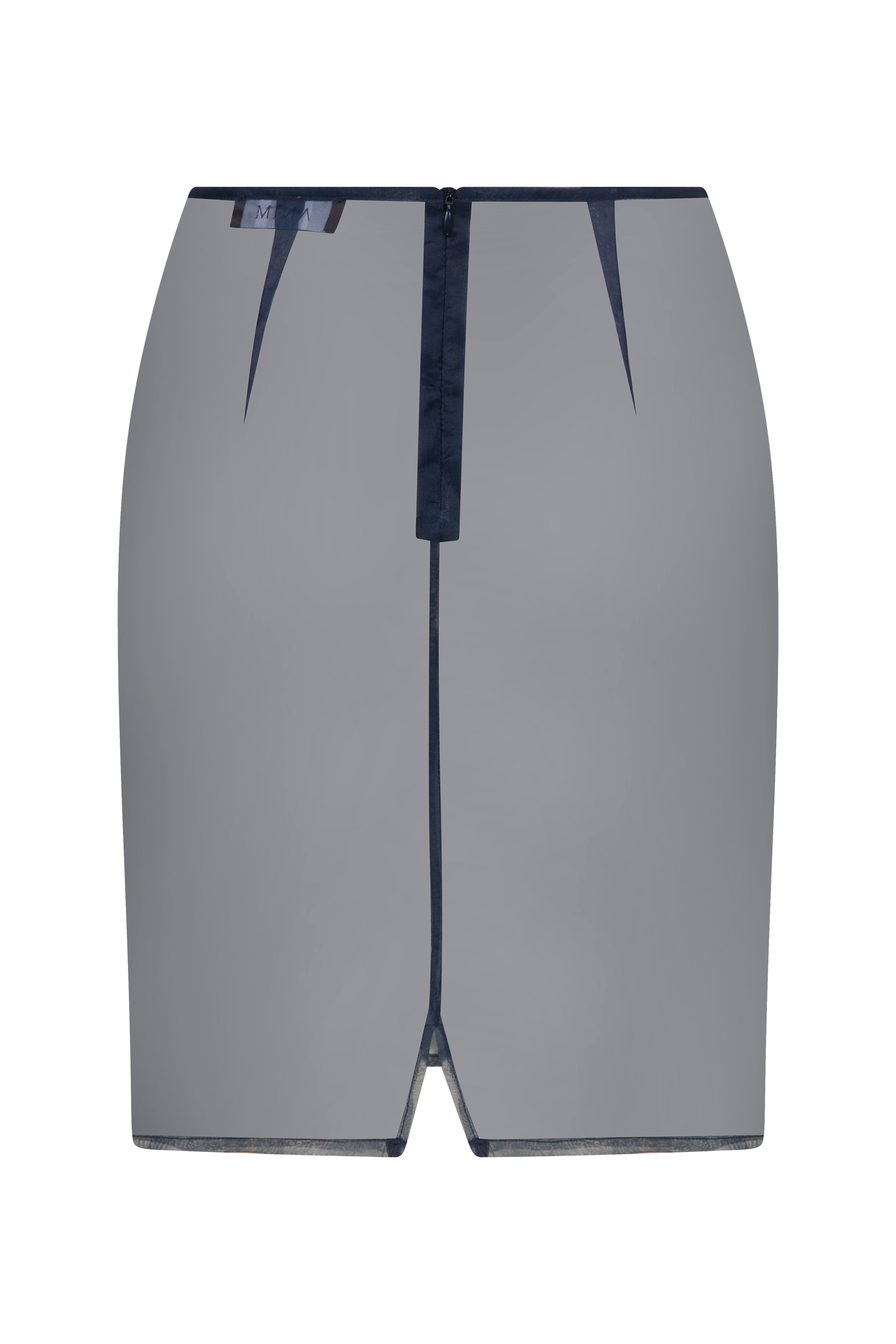 The Martin Skirt is a navy midi skirt crafted from sheer organza with a smooth lining for coverage. Designed with a straight silhouette, it falls just below the knee for a balanced, elegant profile. Perfect for matching with the coordinating top or pairing with contrasting textures for a modern twist.