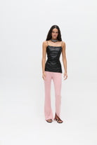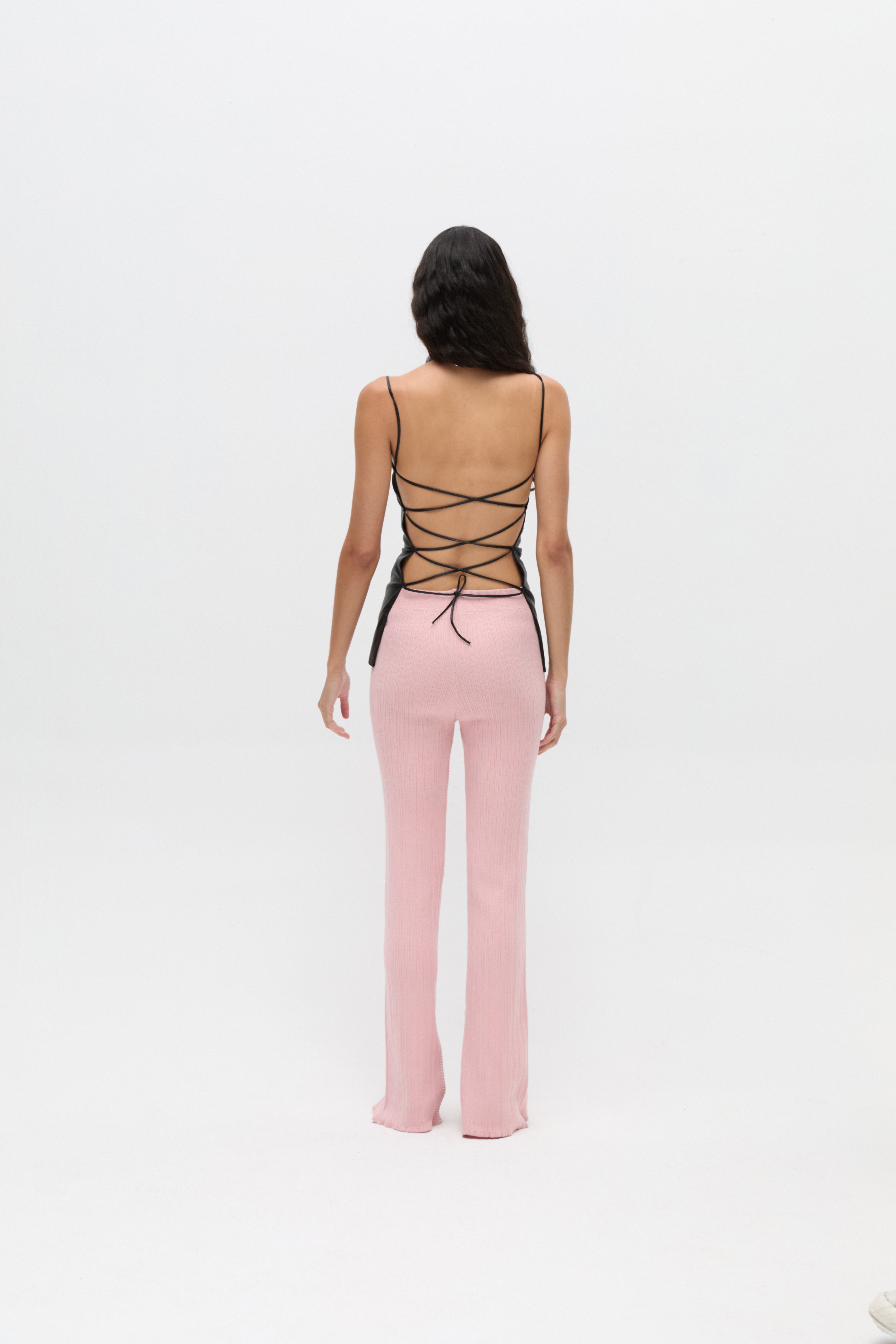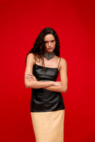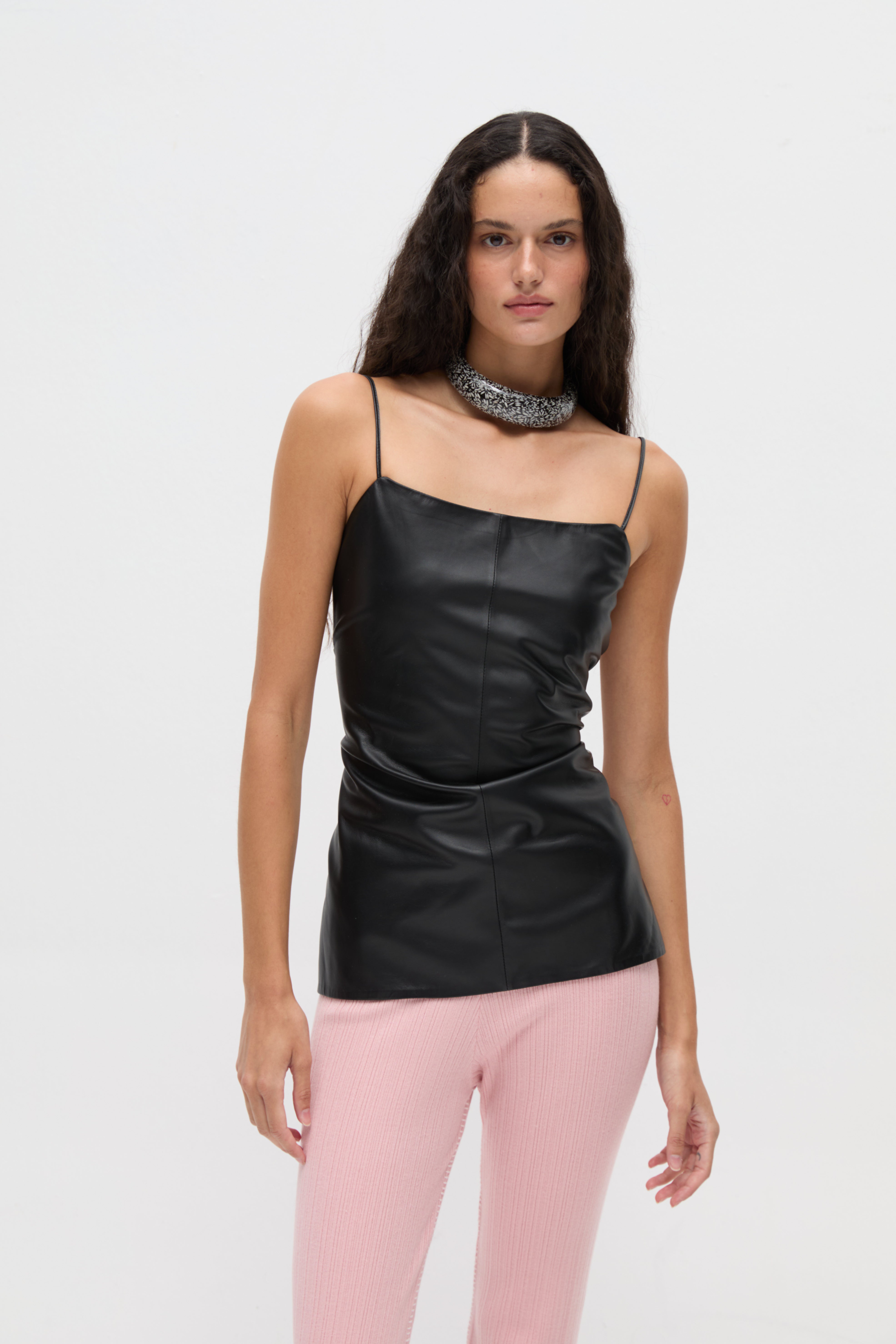The Xena Bustier is crafted from smooth lambskin leather with a sleek, body-hugging silhouette. Its delicate straps and clean lines are complemented by adjustable ties at the back, creating a refined sense of balance. When styled with pants, jackets, or shirts, it adds a strong and sophisticated character to the look.