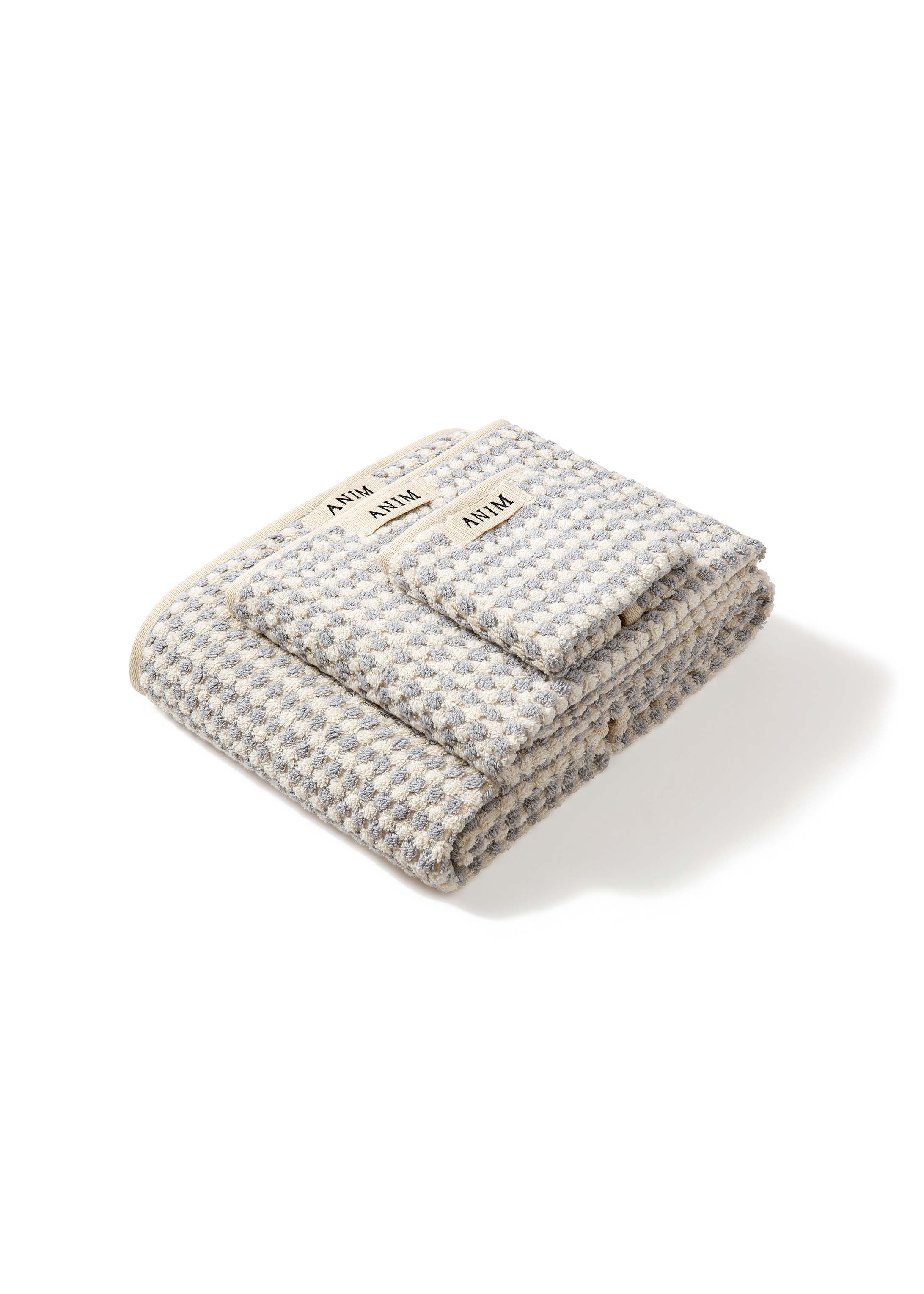 The Cheka Towel Set combines soft tones with a cheerful touch through its checkered design in grey and cream hues. Made from pure cotton, its absorbent texture offers comfort for everyday use while adding warmth and an elegant feel to your bathroom.
