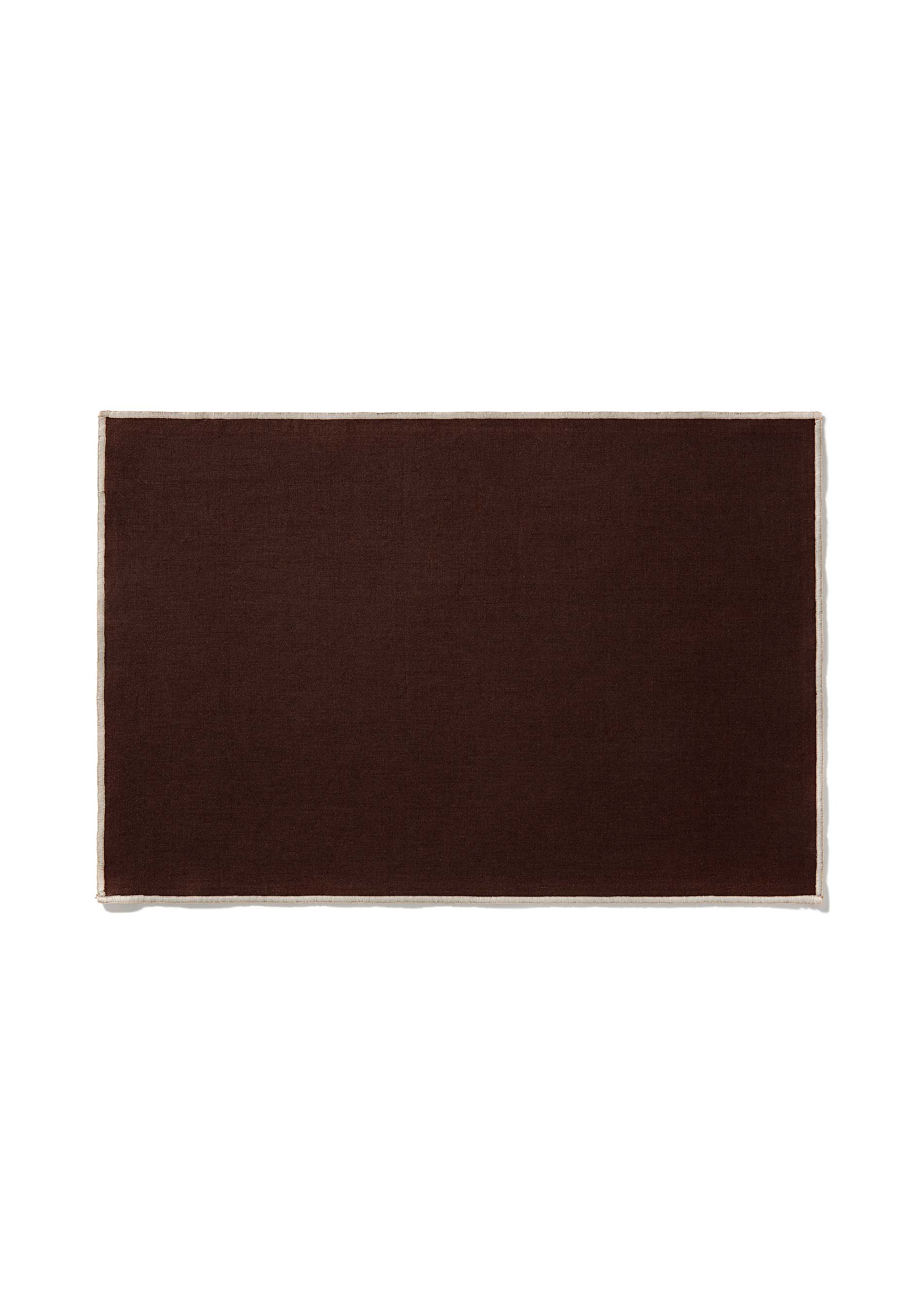 Margot Placemat features rich brown linen framed with contrast beige piping, creating a timeless and composed look for any dining occasion. Sold as one.