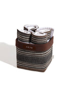 The easiest and coziest way to cheer up your bathroom, while upgrading it with the finest quality of Turkish towels. This bundle includes four crisp white cotton washcloths, each finished with a bold brown garcia border that adds a refined pop of color. Packed in a matching brown garcia pouch, this thoughtfully designed set blends style and functionality — perfect for daily use, travel, or gifting.