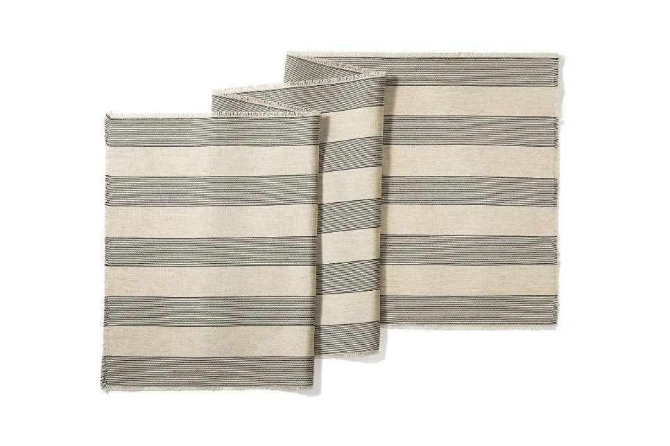 Garcia Runner features a striped beige and grey design that adds a soft, natural rhythm to any table setting. Its understated tones and clean lines make it perfect for everyday dining or laid-back gatherings. Sold as one.