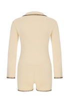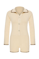 Long Sleeve Mini Jumpsuit With Brown Hemstitched Details