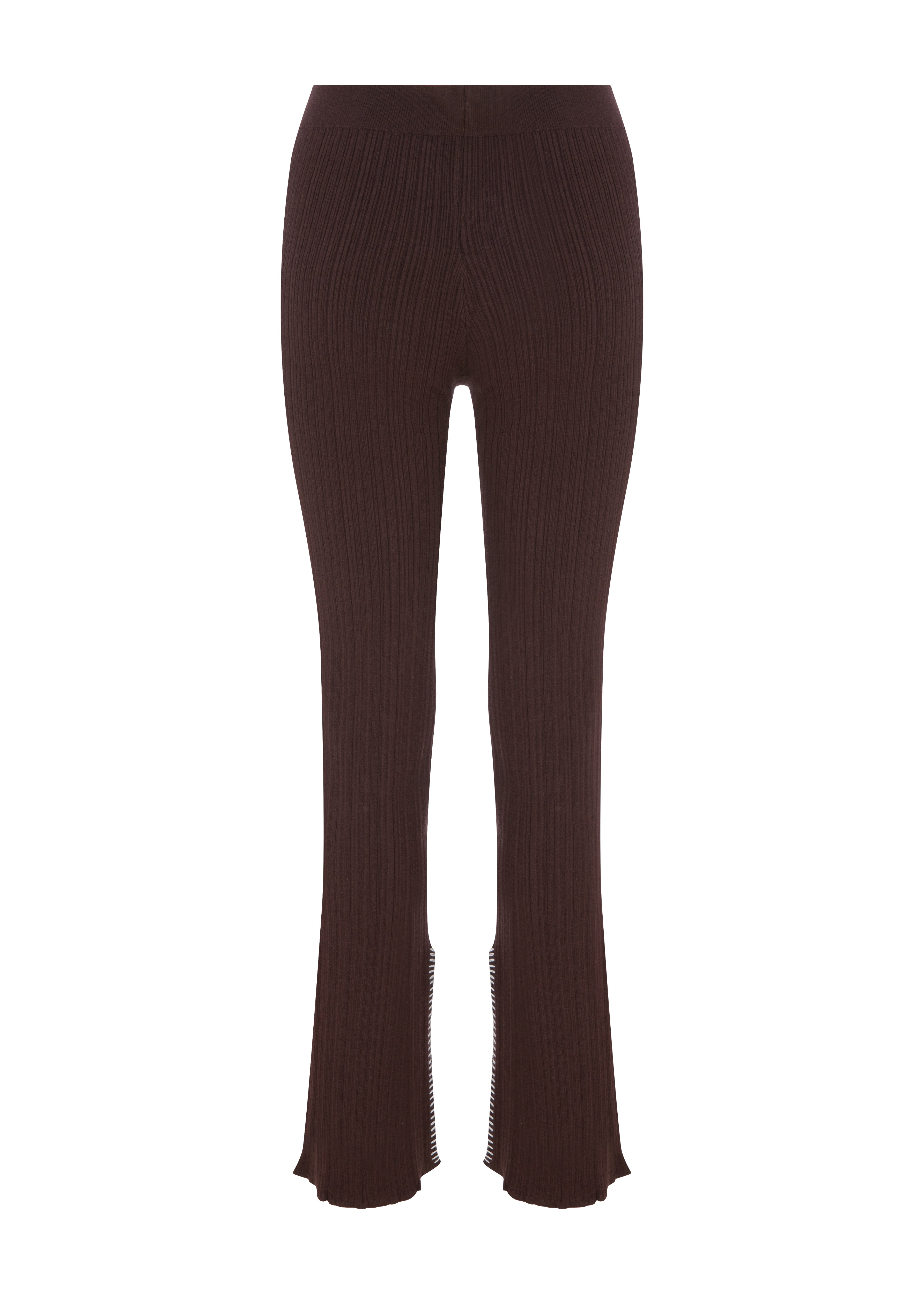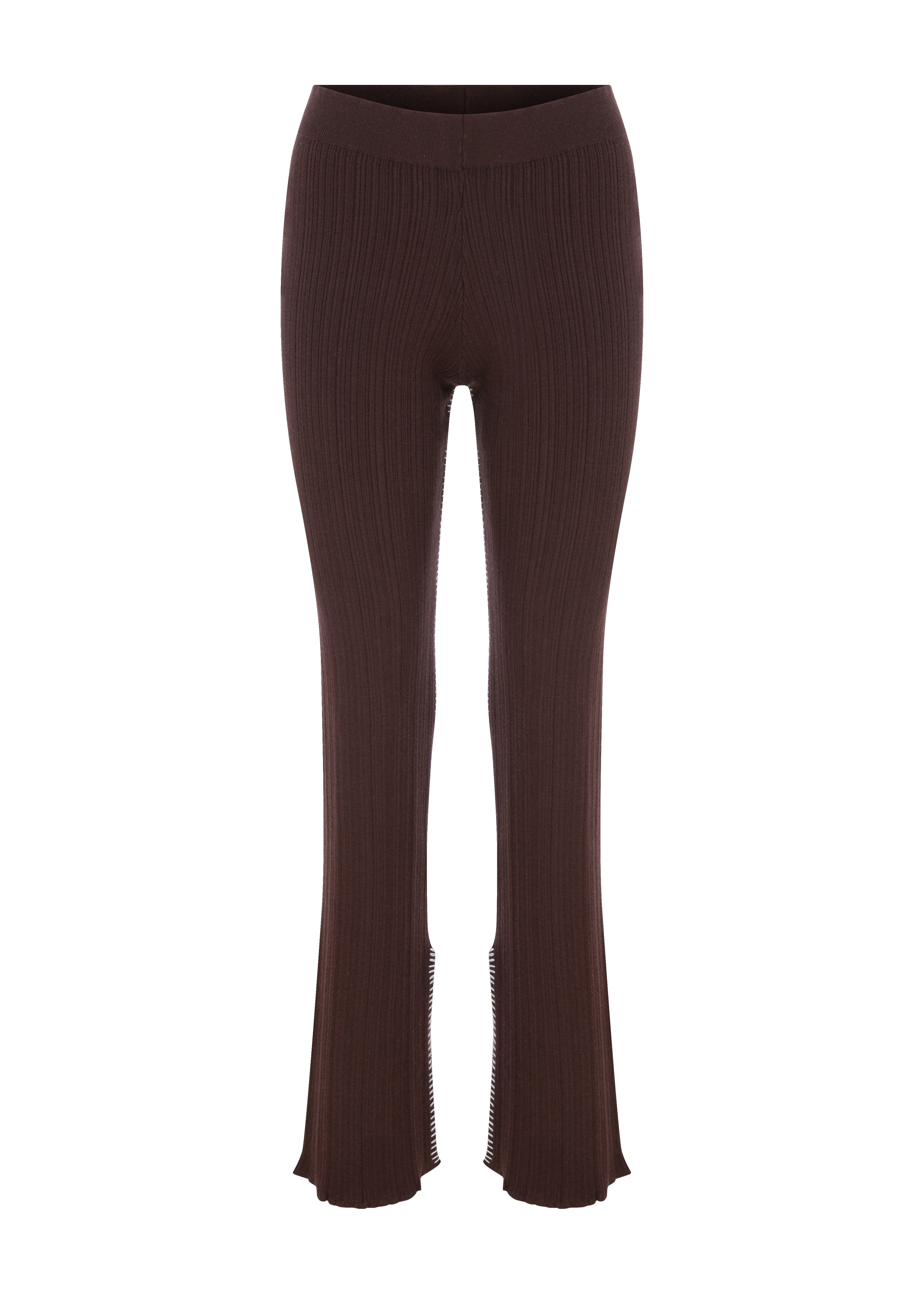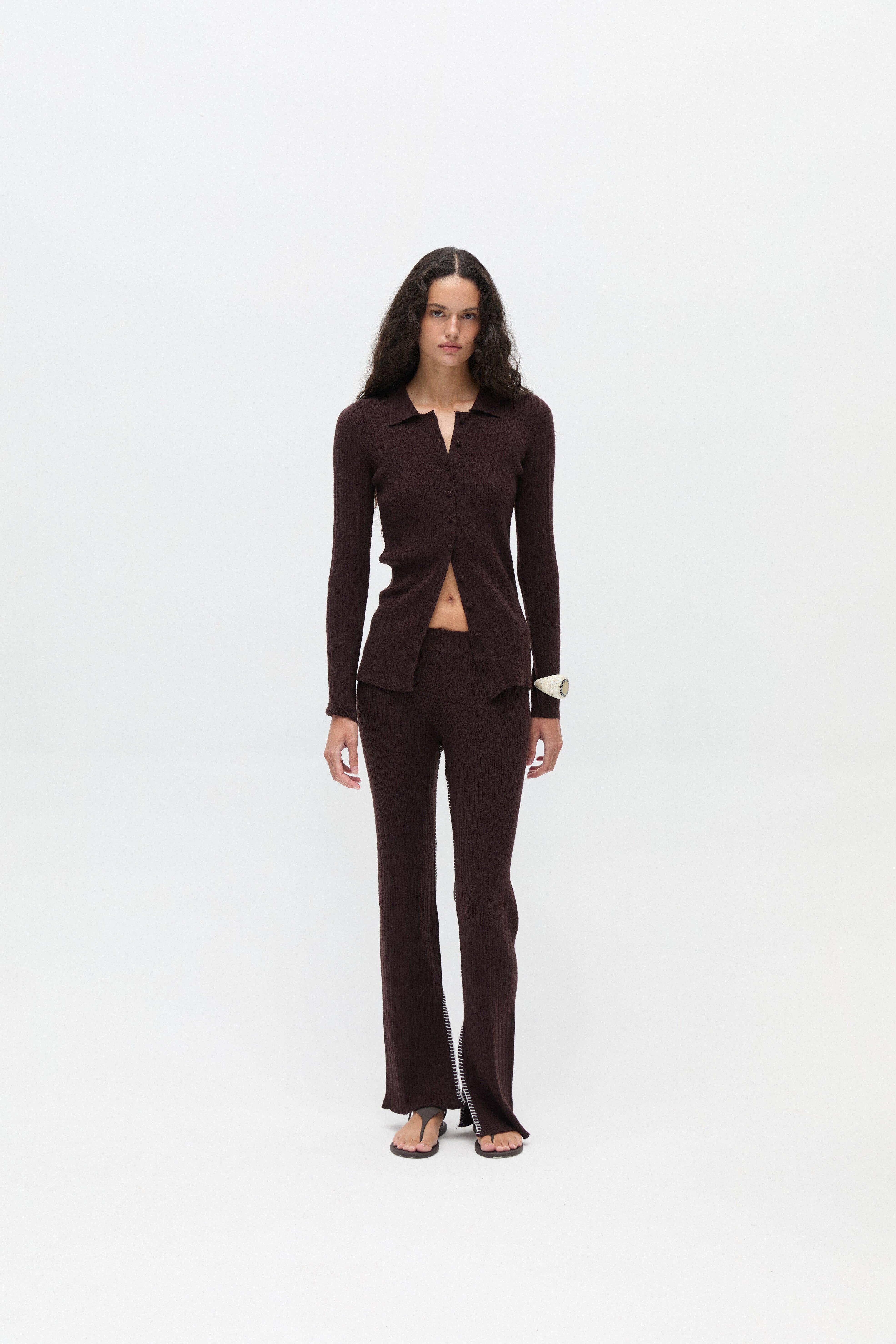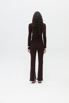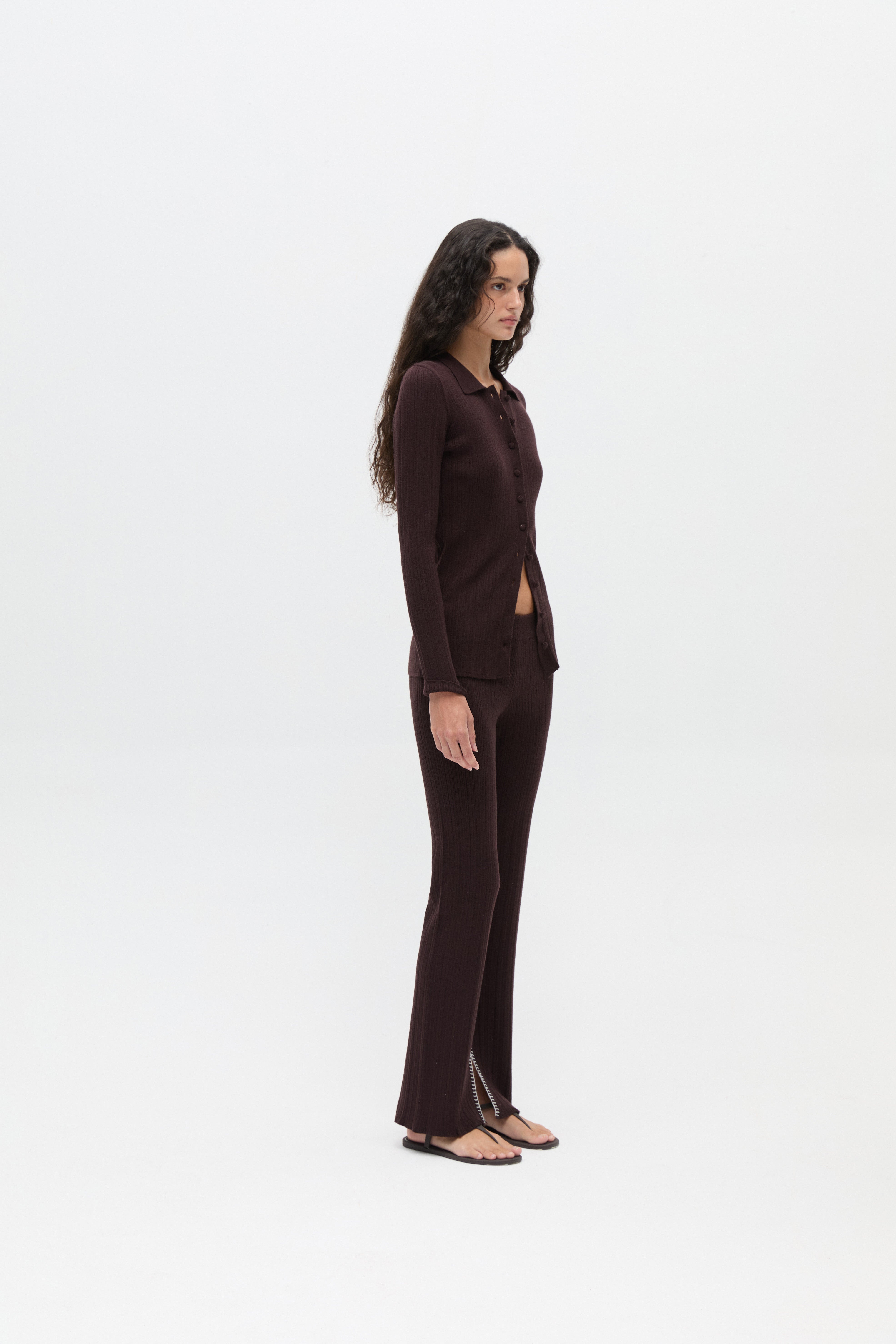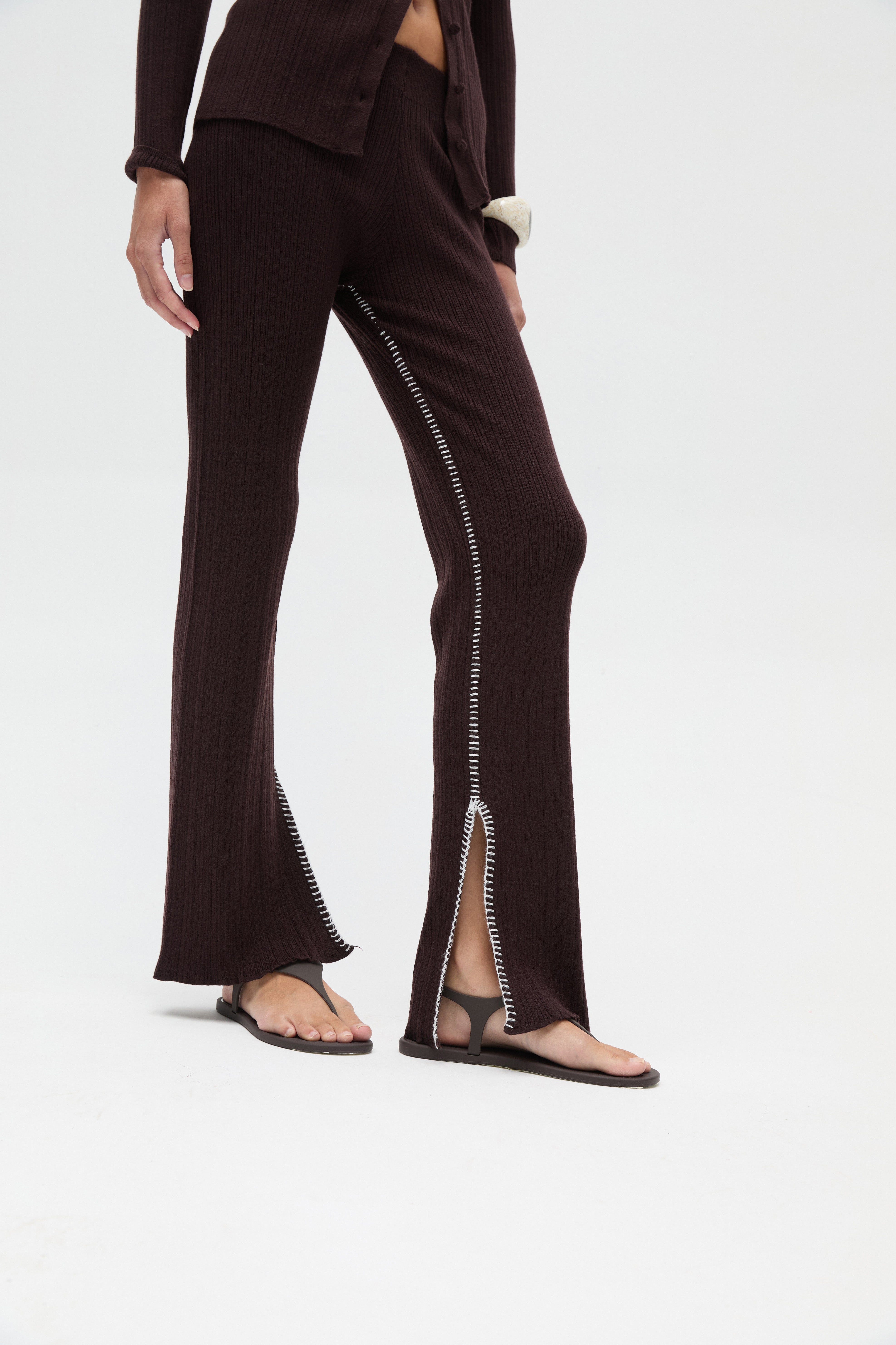 The Iris Pants are tailored from a smooth, lightweight knit fabric, offering an elegant drape and a polished finish. A straight-leg cut elongates the silhouette, while subtle hemstitch detailing at the waistband adds a refined accent. Designed to sit comfortably at the waist with a streamlined fit through the hips, they provide versatility for pairing with both structured tops and relaxed knits.