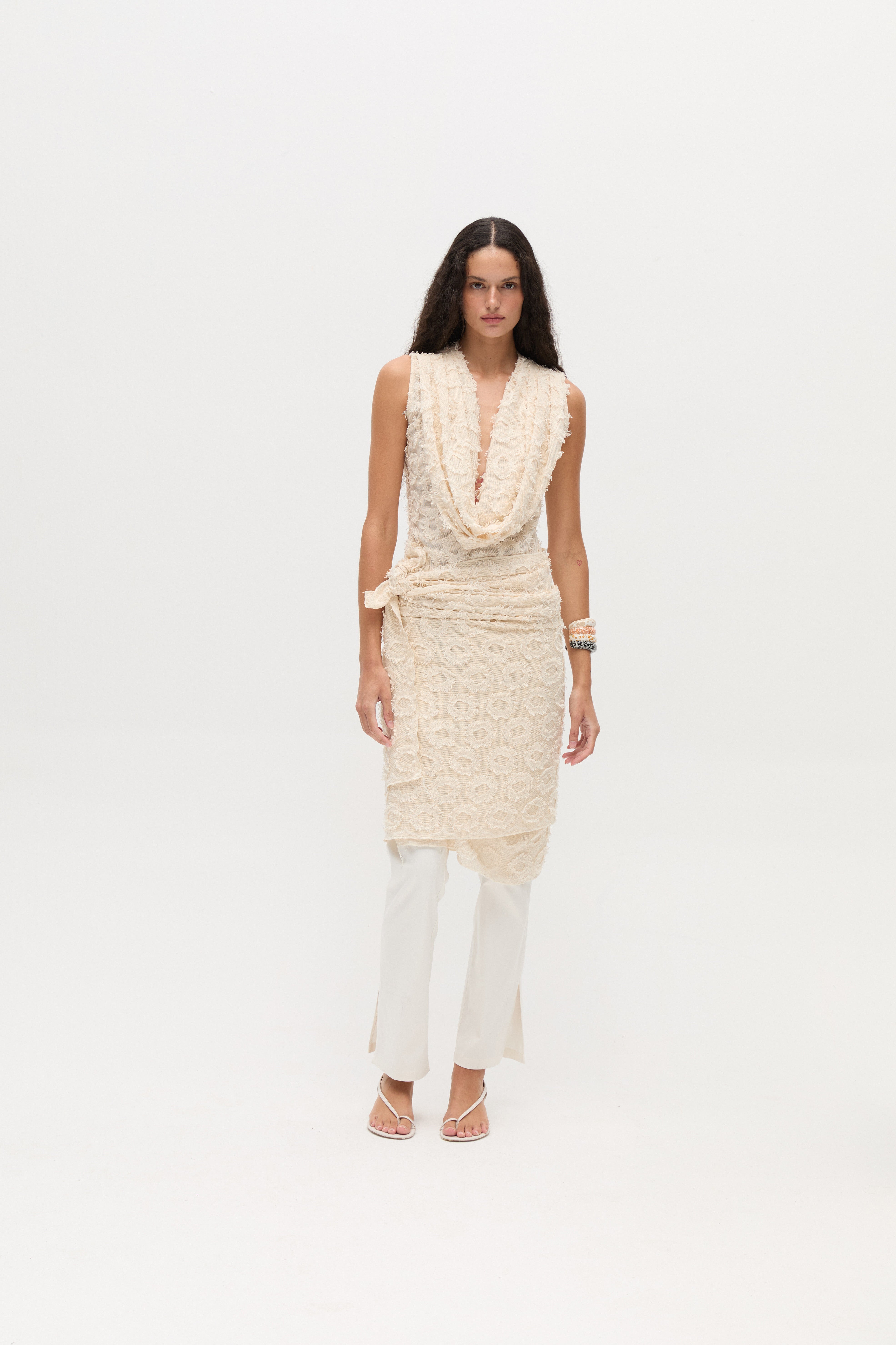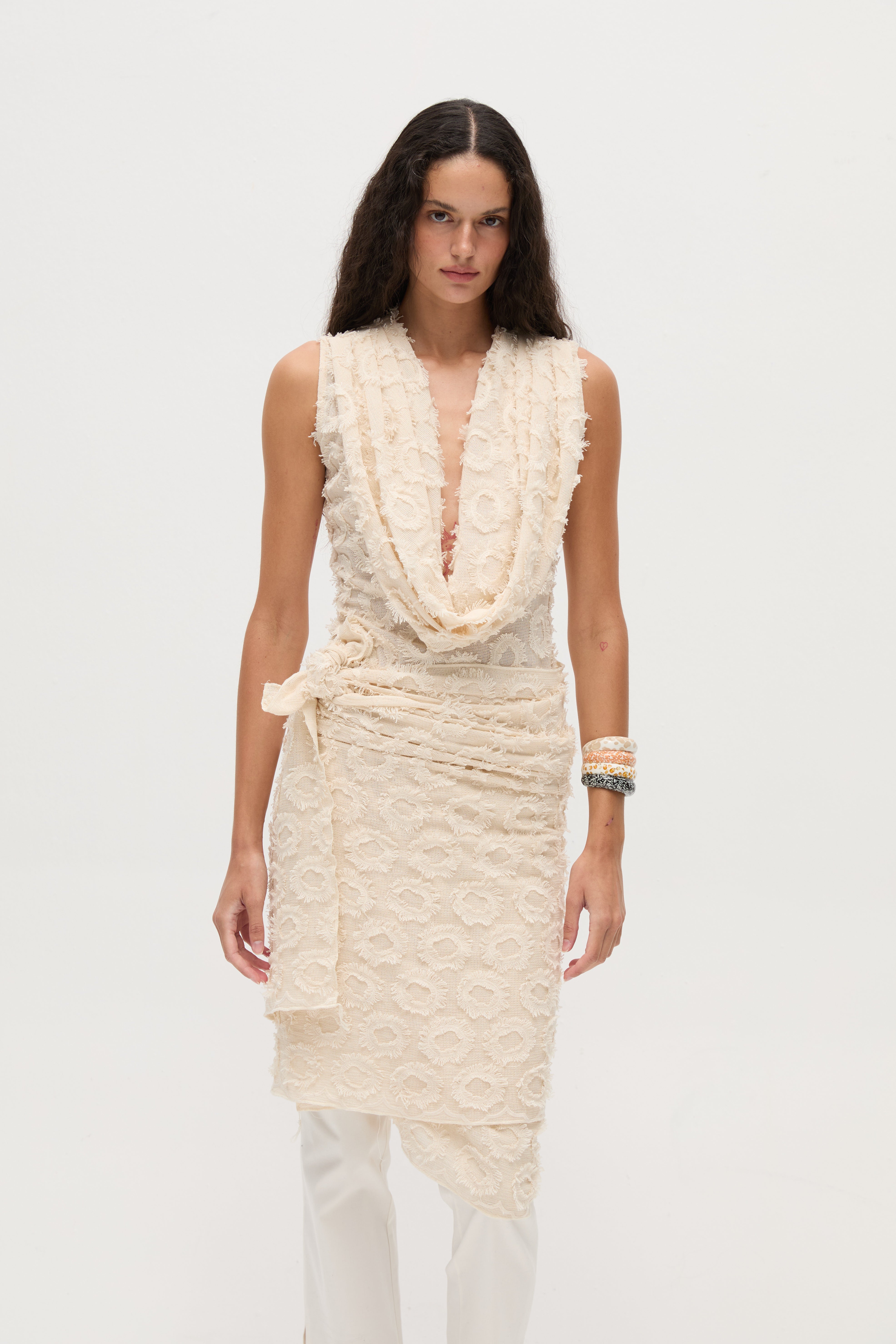 The Luma Shawl & Cover Up is a versatile appliqué-embroidered wrap that can be styled as a shawl or tied as a sarong-style skirt. Lightweight and soft against the skin, it drapes effortlessly to complement both casual and refined looks. Its adaptable design makes it equally suited for layering over dresses, pairing with swimwear, or adding a textured finish to everyday outfits.