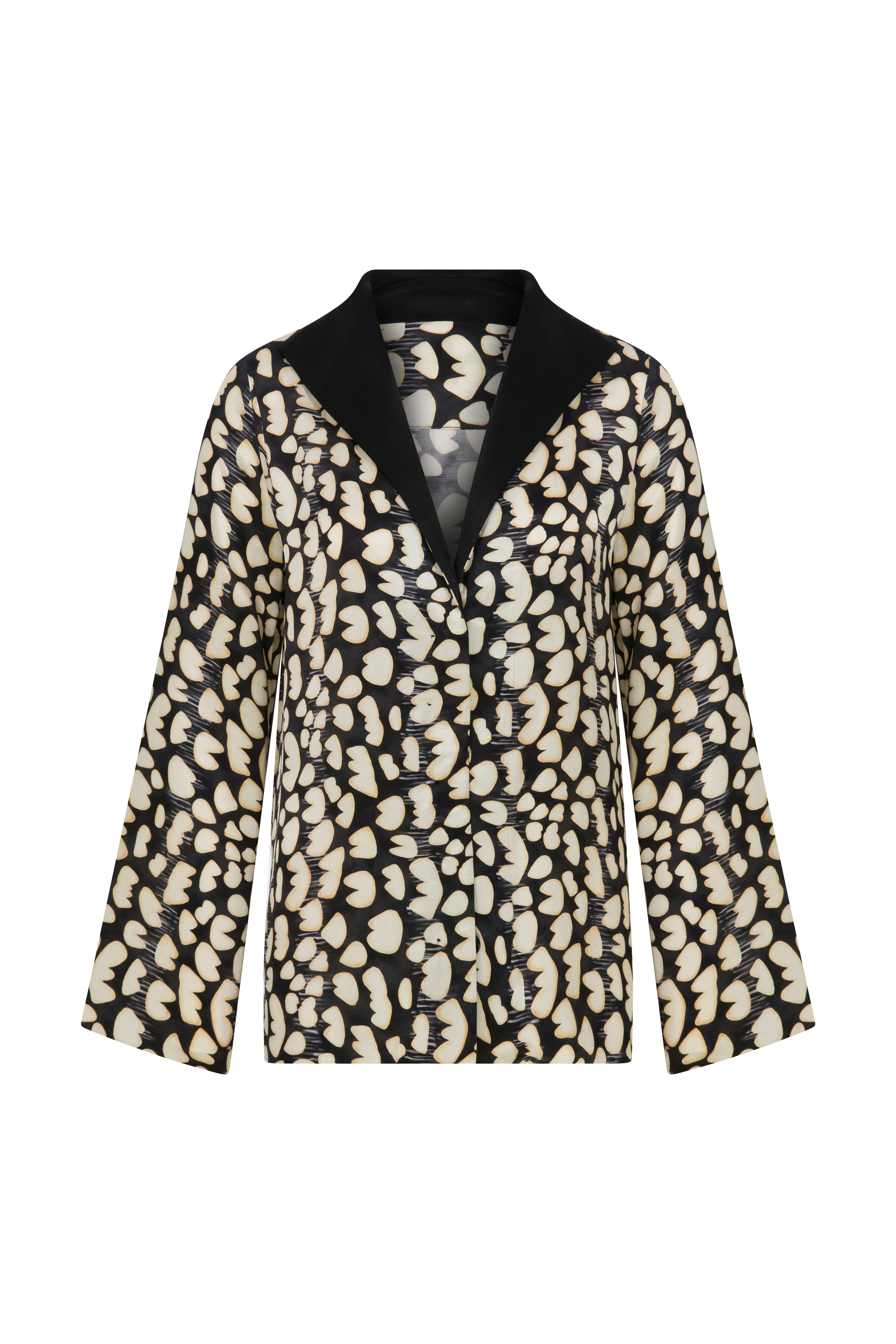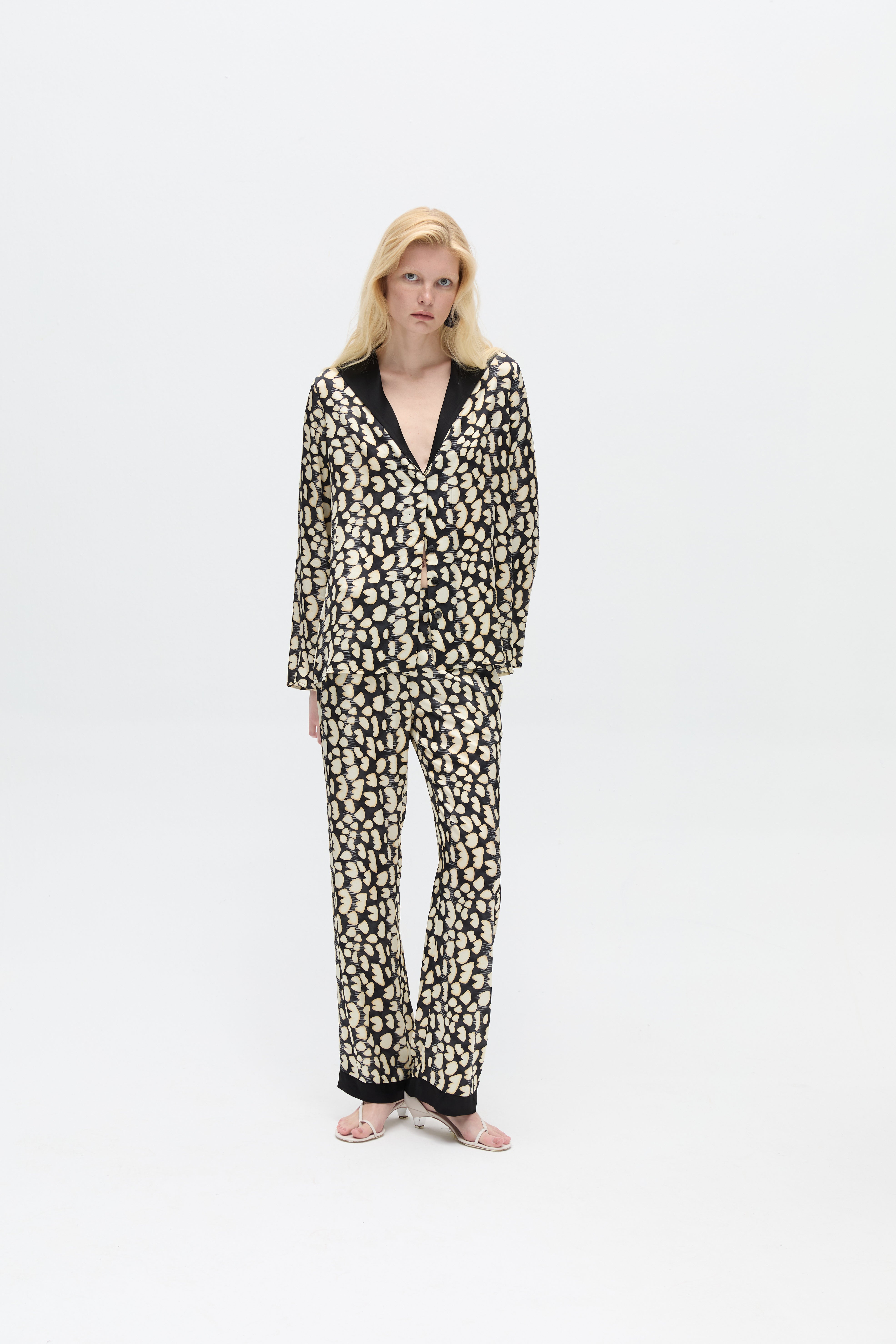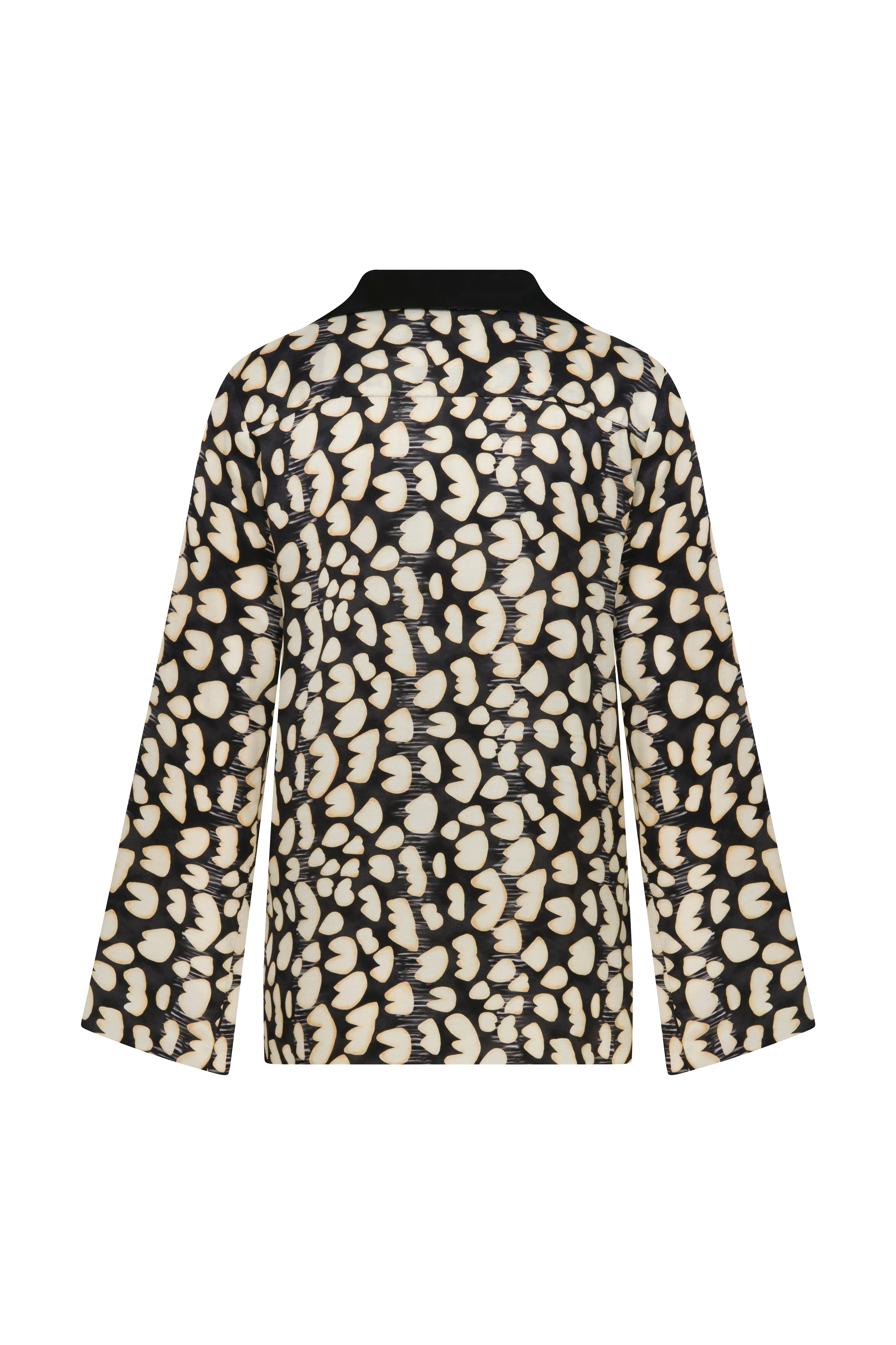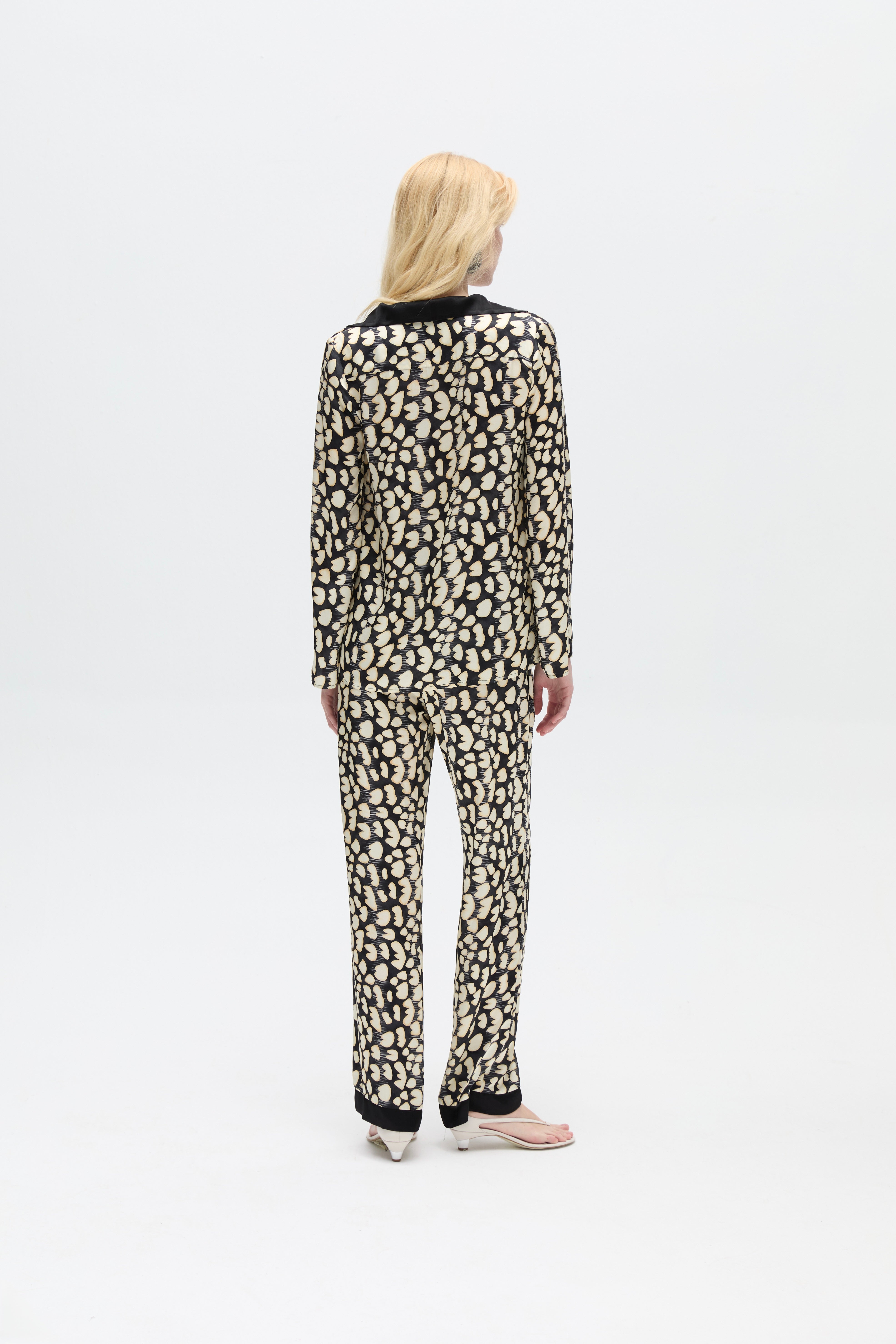 The Luna Shirt is tailored from satin-textured viscose fabric featuring a distinctive print. Its relaxed fit is complemented by refined details, including a structured collar with a black accent and long sleeves that create a balanced look. Designed for versatile styling, it can be worn buttoned up for a polished feel or open over other pieces for a more effortless style.