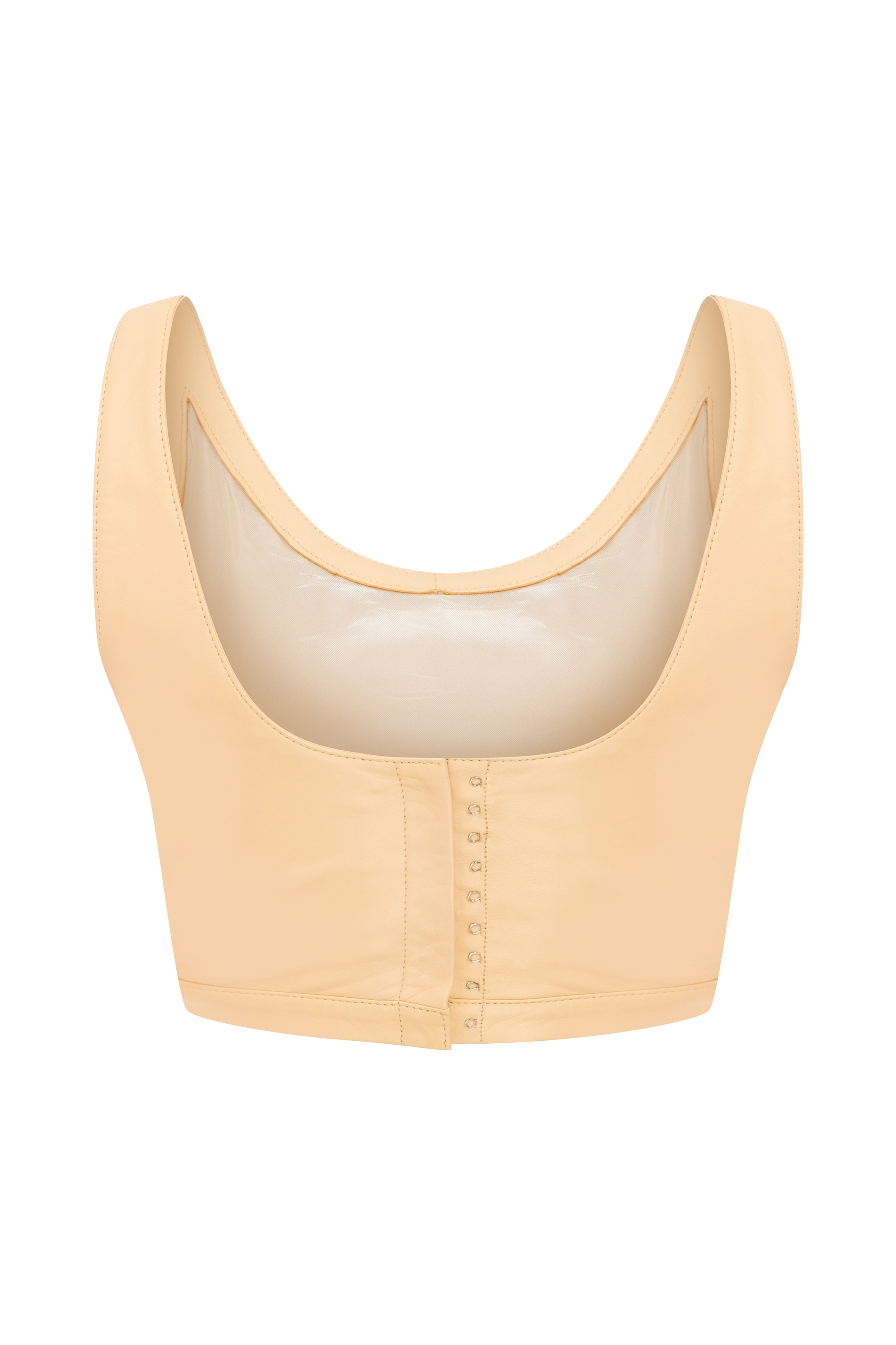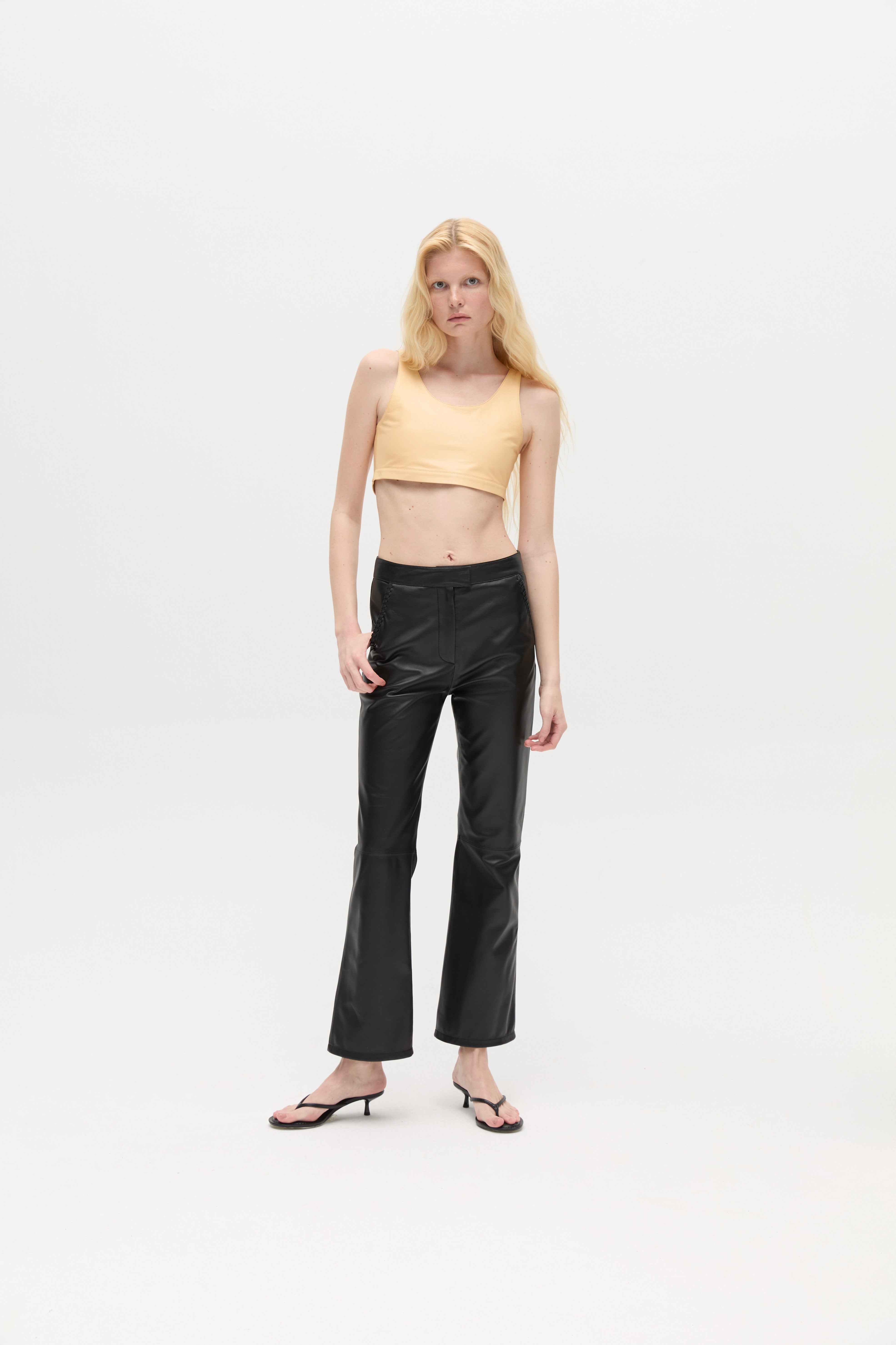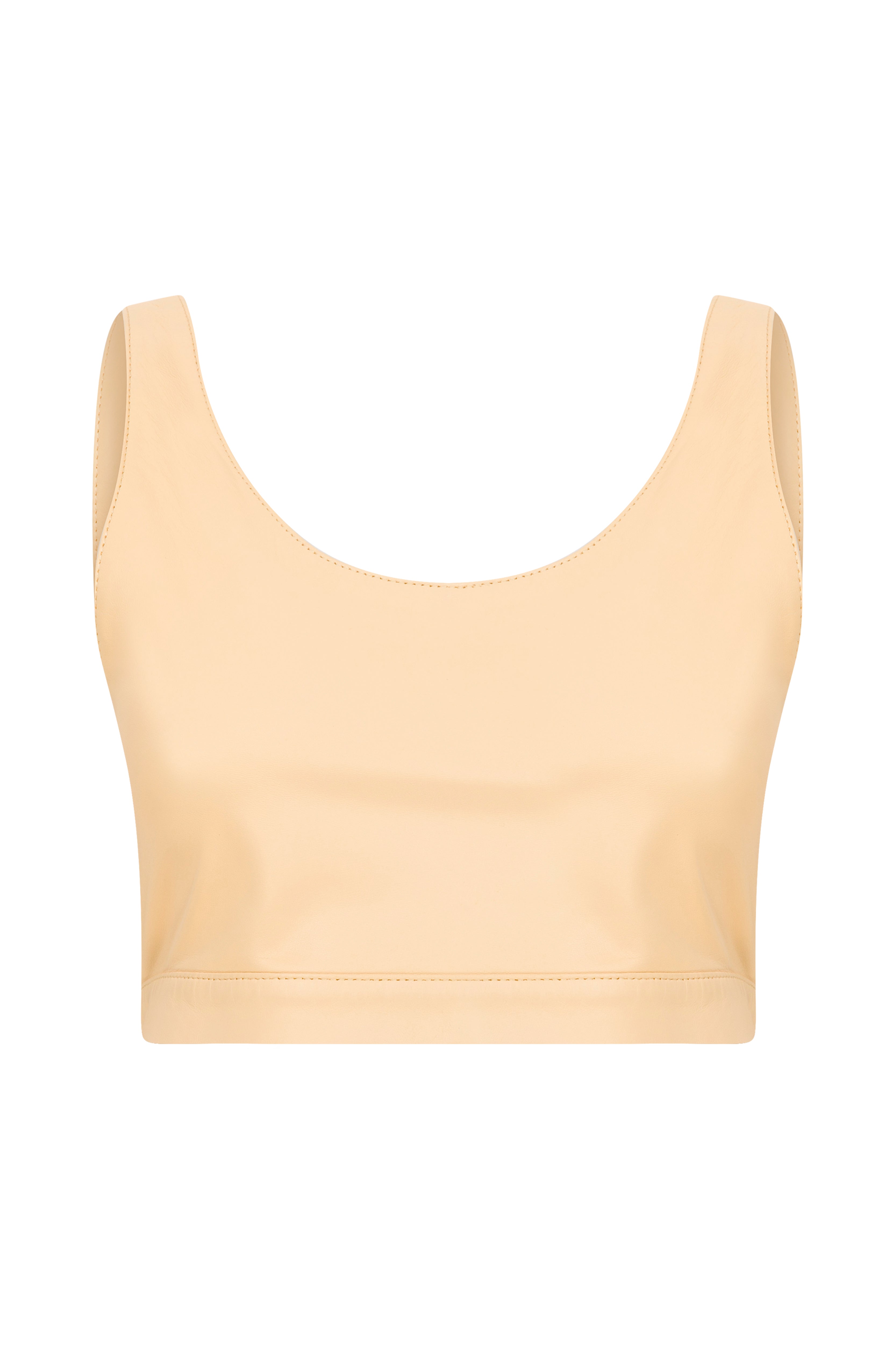 The Nina Top is crafted from yellow lambskin leather and features a structured crop silhouette that contours to the body for a modern look. With clean seams and a smooth finish, it offers both a precise fit and a strong presence. Minimal yet striking, it can be worn on its own or layered under a jacket for a contemporary contrast.
