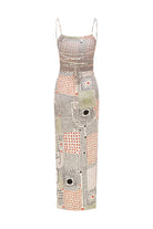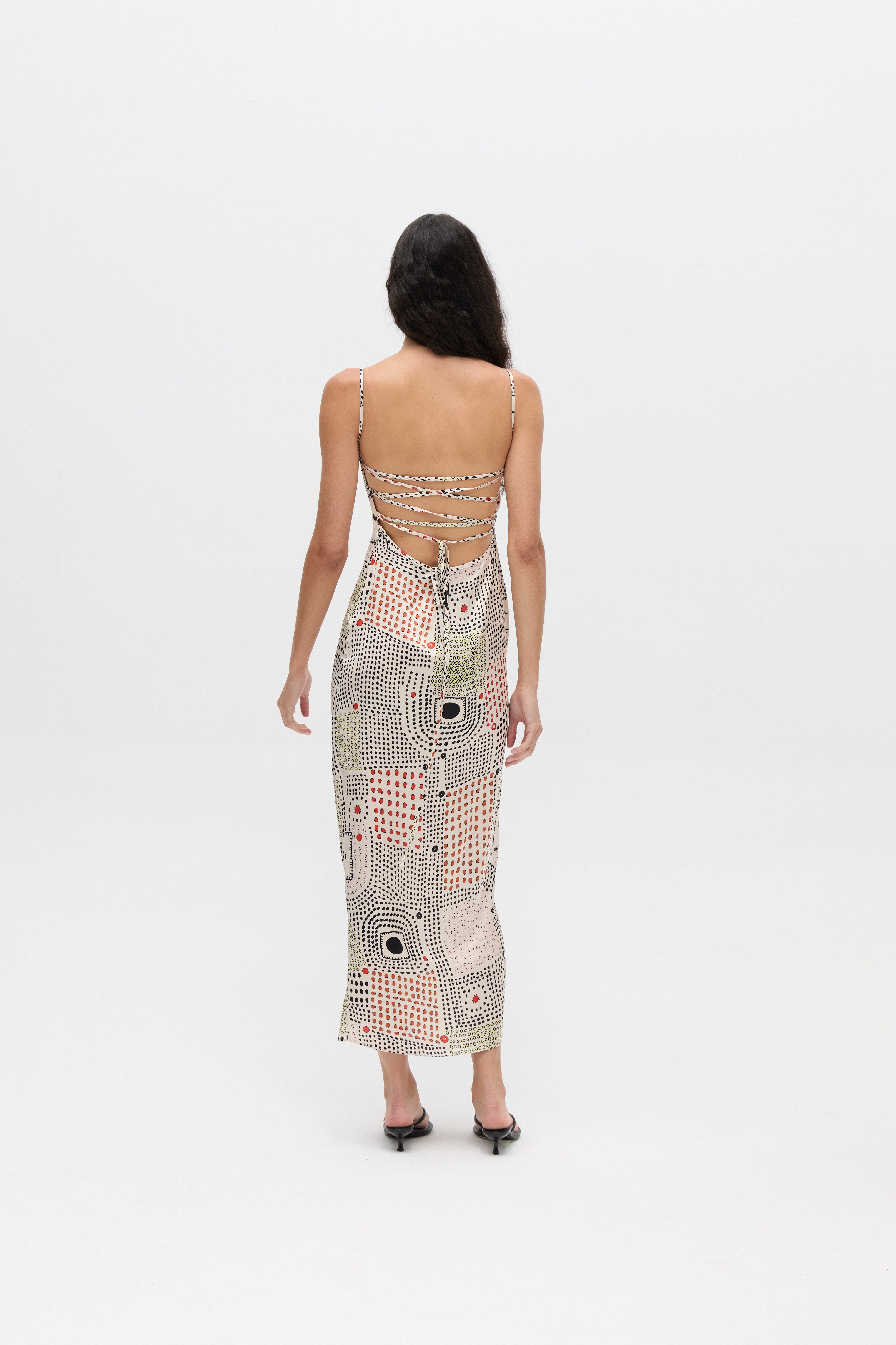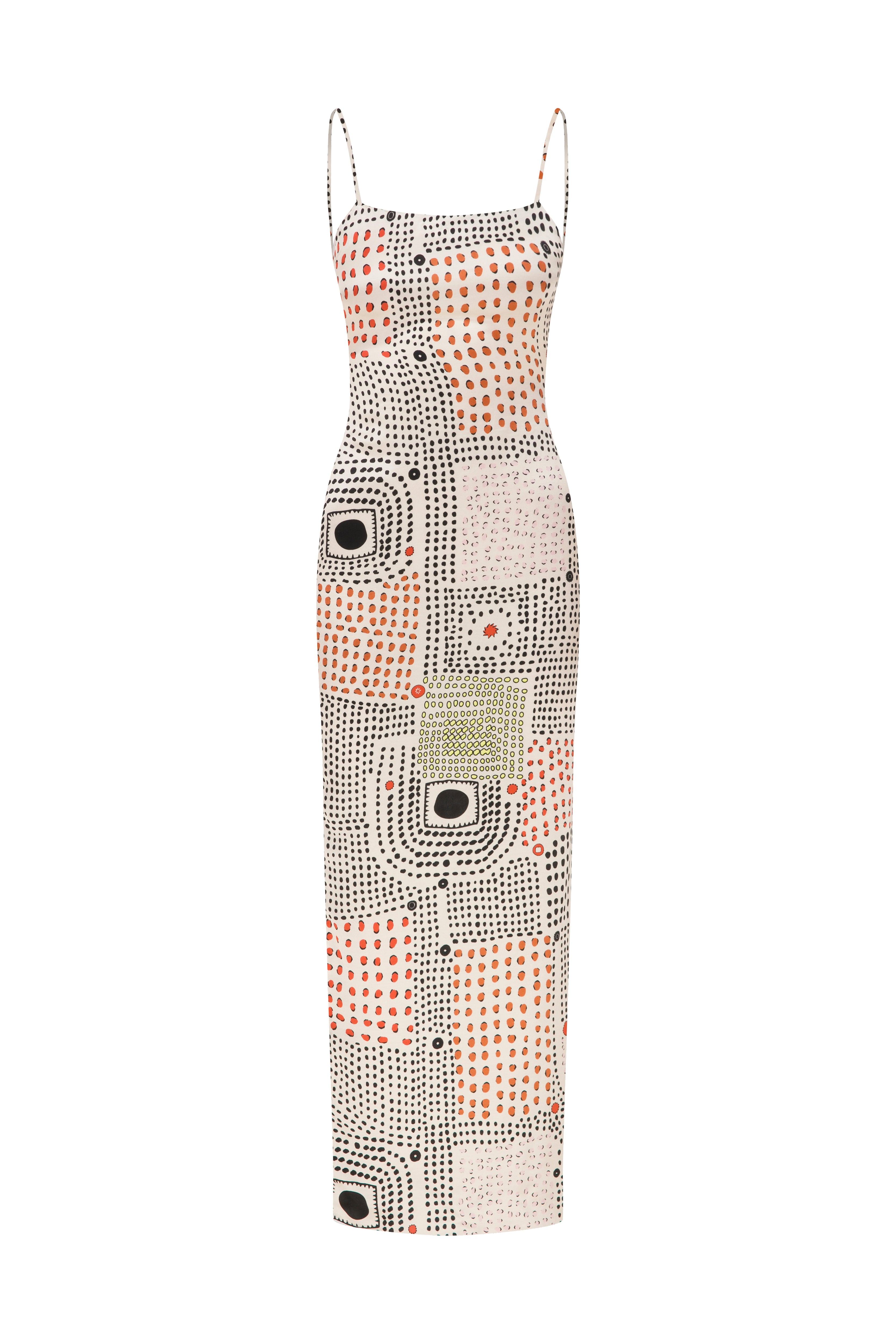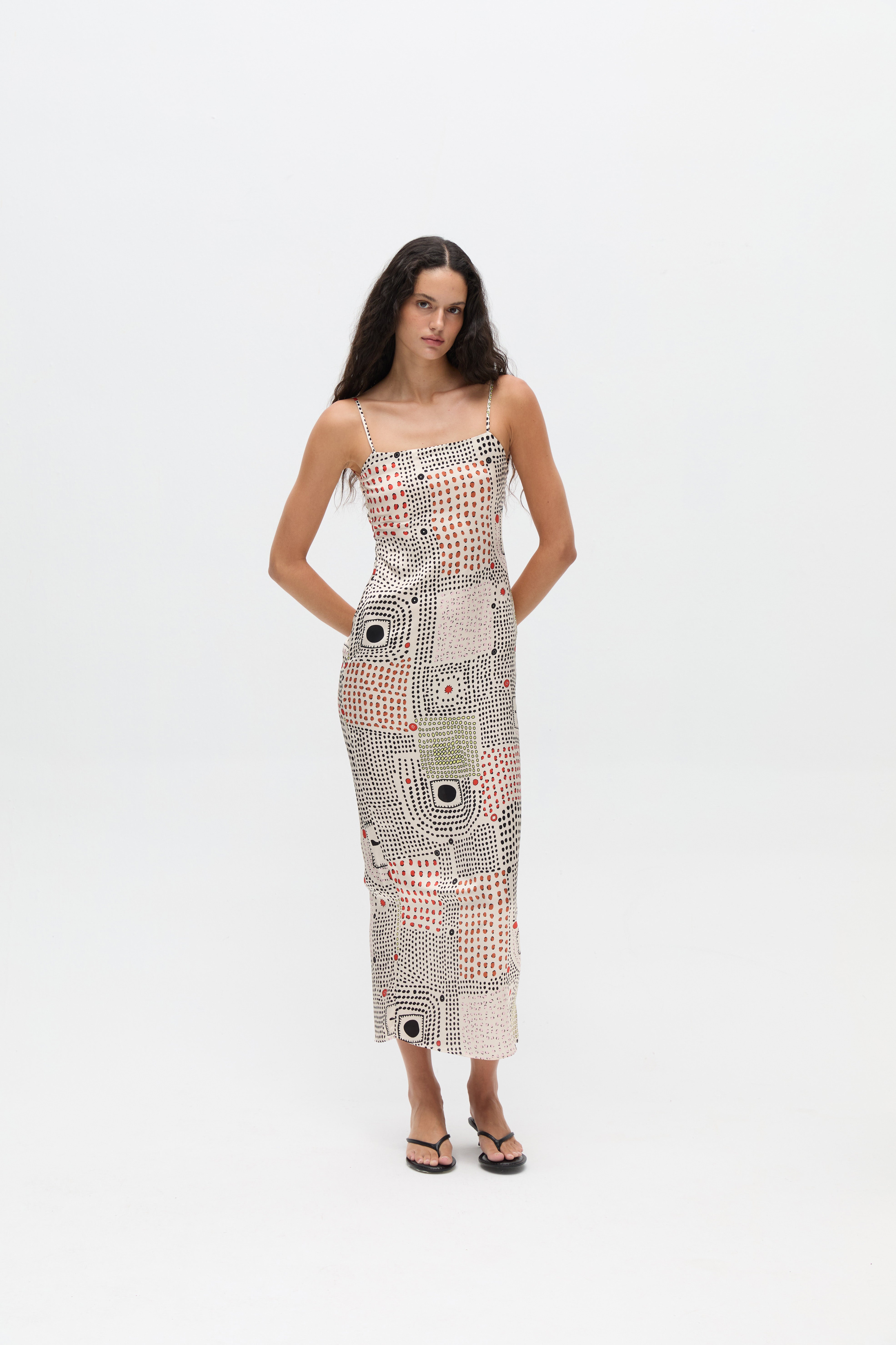 The Pippa Midi Dress is a printed design crafted from satin-textured viscose fabric. With its slim straps, straight cut, and tie detail at the back, it offers a feminine look. Clean lines and a balanced silhouette create a simple yet elegant appearance.
