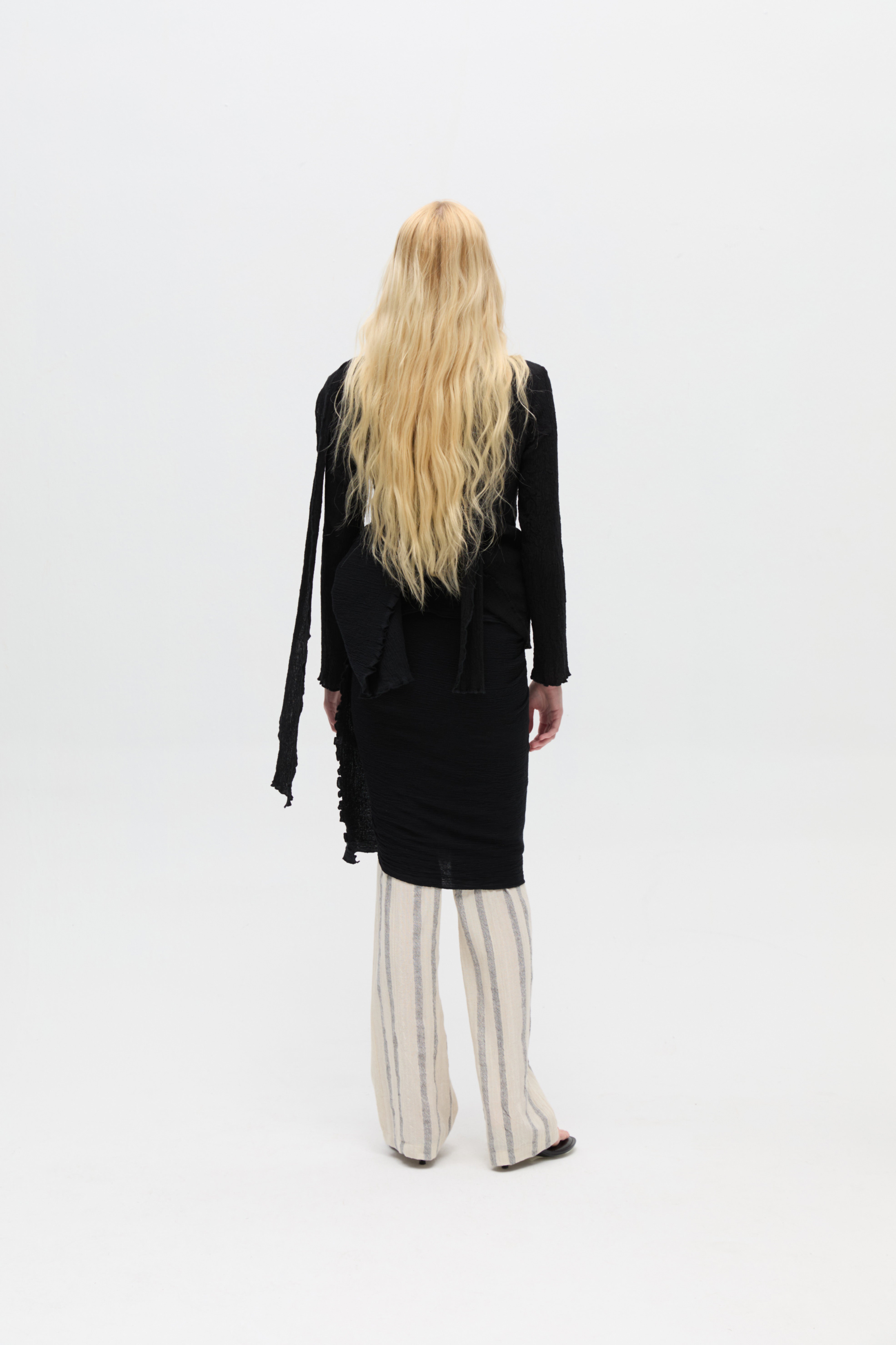 The Sienna Shawl is crafted from cotton crinkle fabric, offering a lightweight, breathable layer with a softly textured finish. Designed for versatility, it can be draped over the shoulders as a shawl or tied at the waist in a sarong-style skirt, making it an adaptable piece for both styling and casual layering.