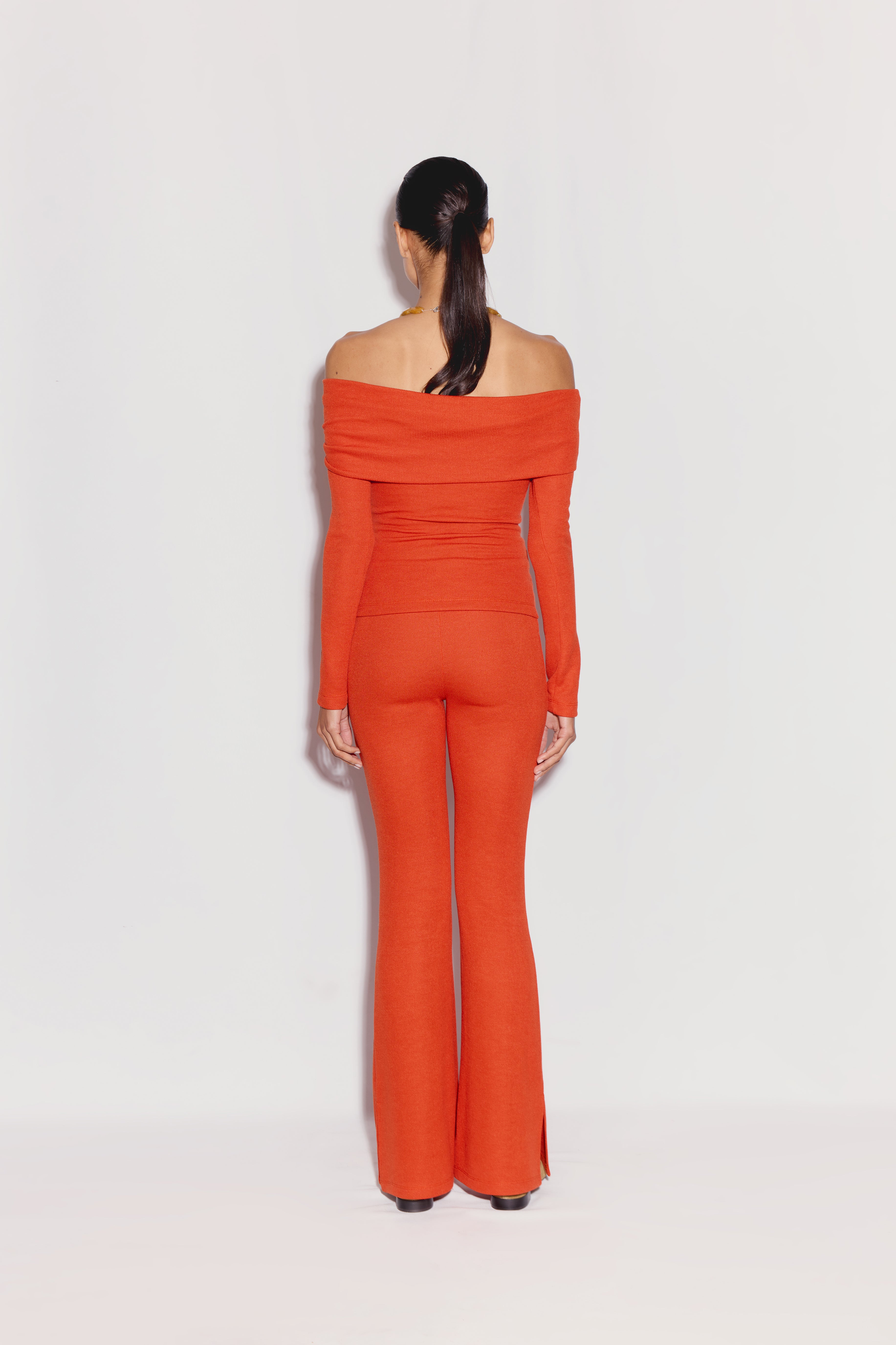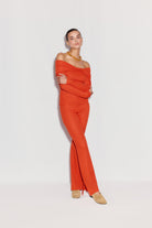 The Rhea Pants are wide leg pants in a bold seasonal orange shade. Crafted from a structured yet flexible cotton-polyester blend, they sit high on the waist and fall into a flowing, wide leg cut that elongates the frame. The fit balances sharp tailoring with a relaxed, contemporary vibe.