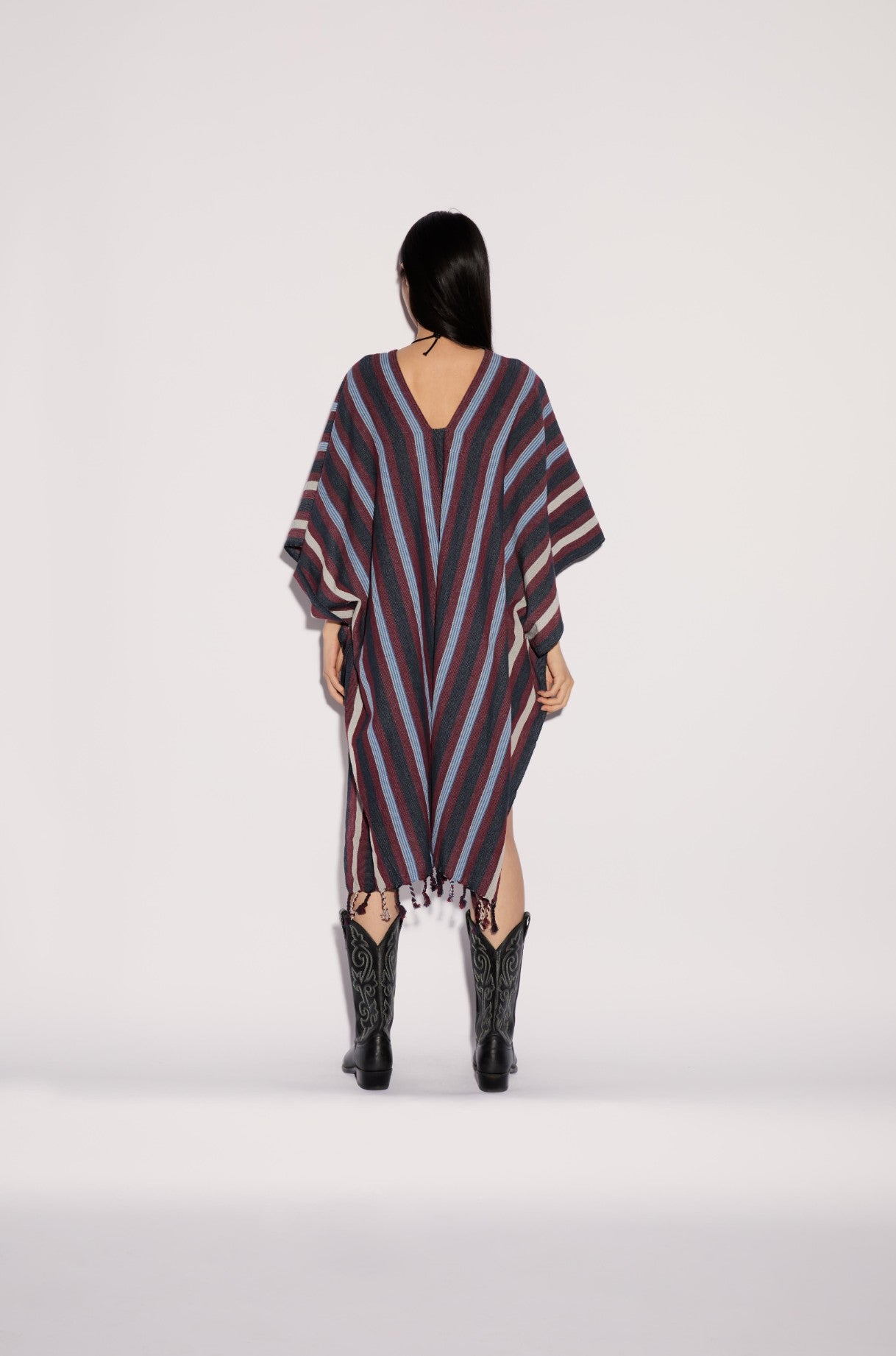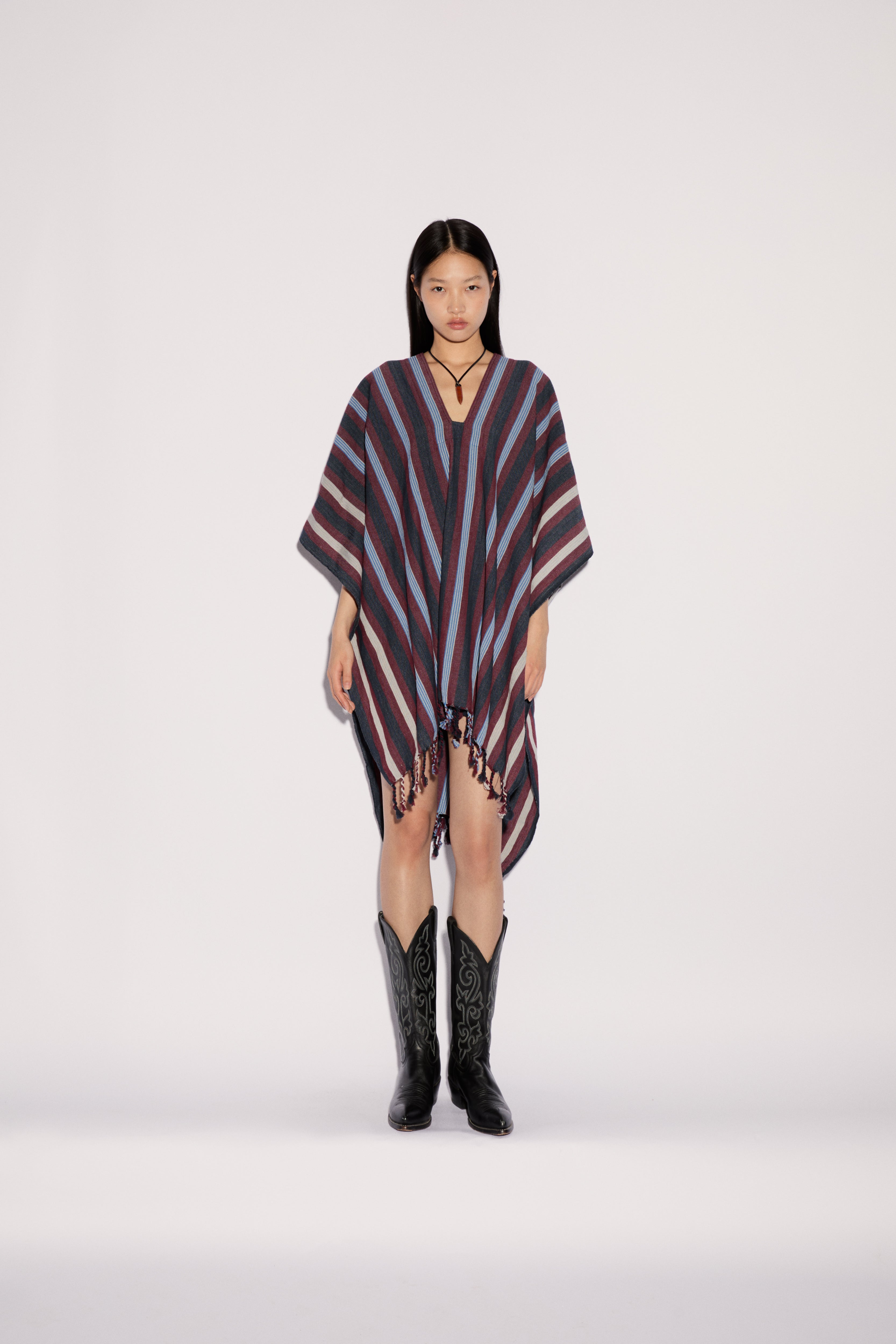 The Kahi Top is a lightweight cape-style piece made from cotton, featuring a multicolor weave that adds texture and vibrancy. Its open, easy silhouette makes it perfect for layering—blending tradition with a relaxed, modern attitude.