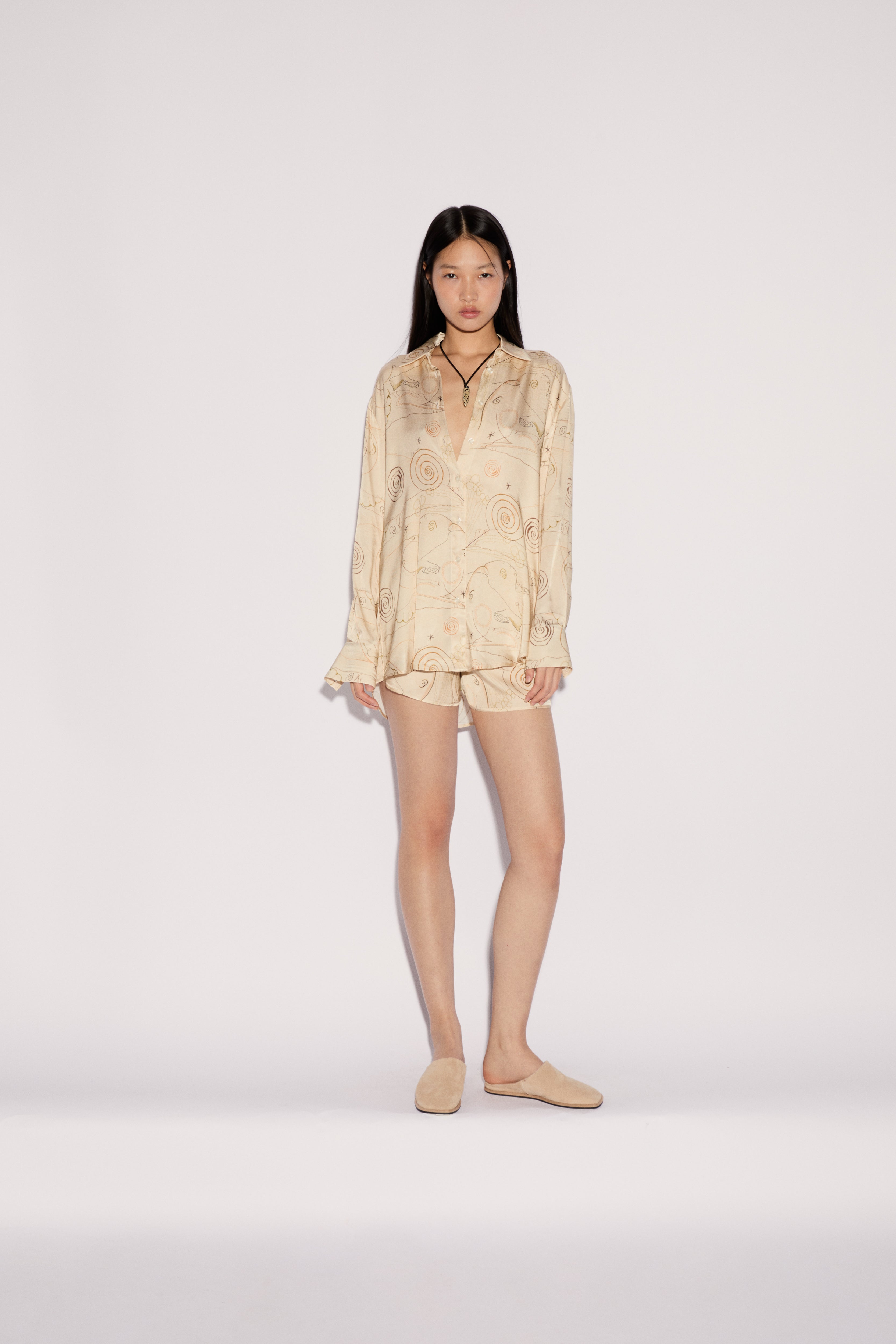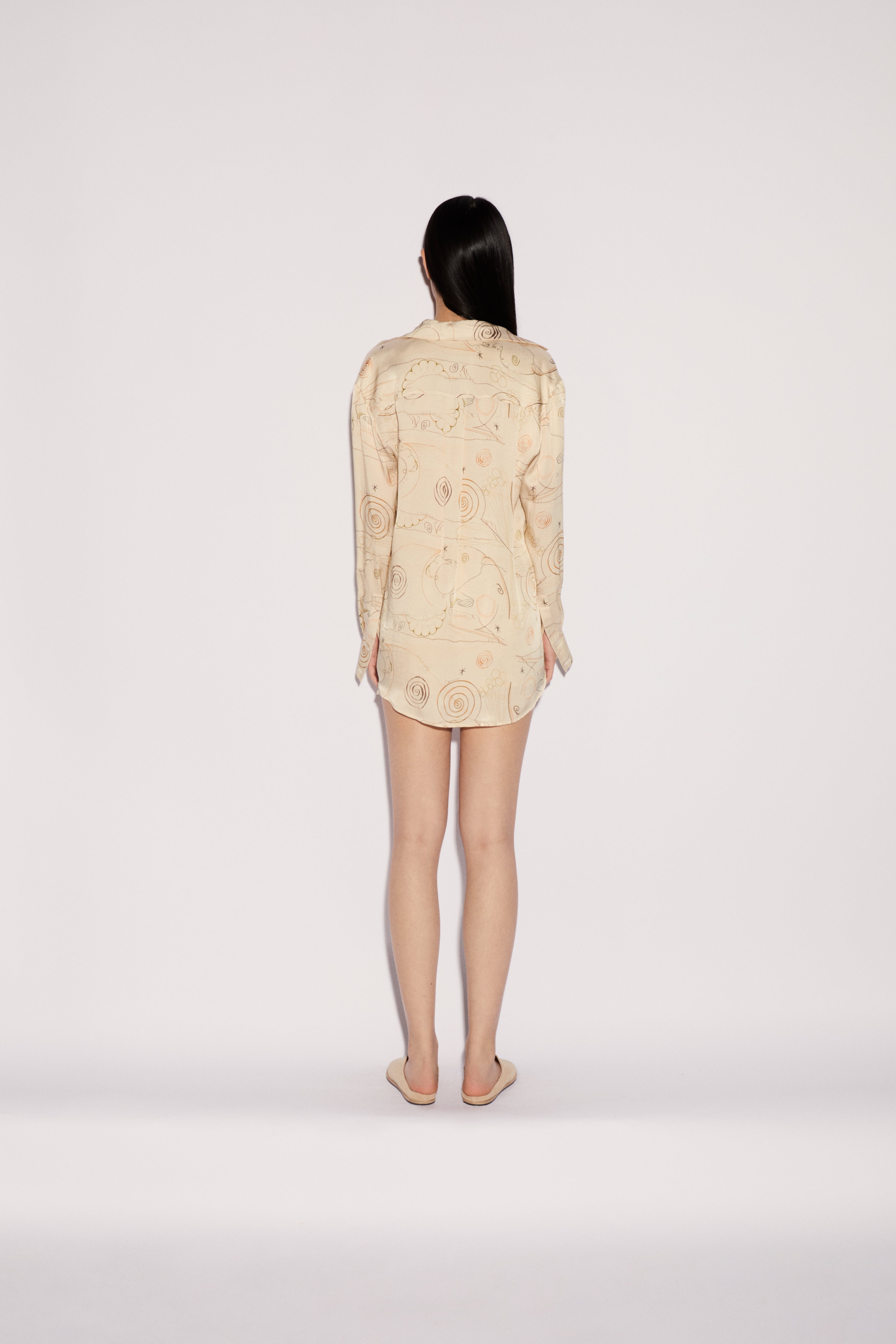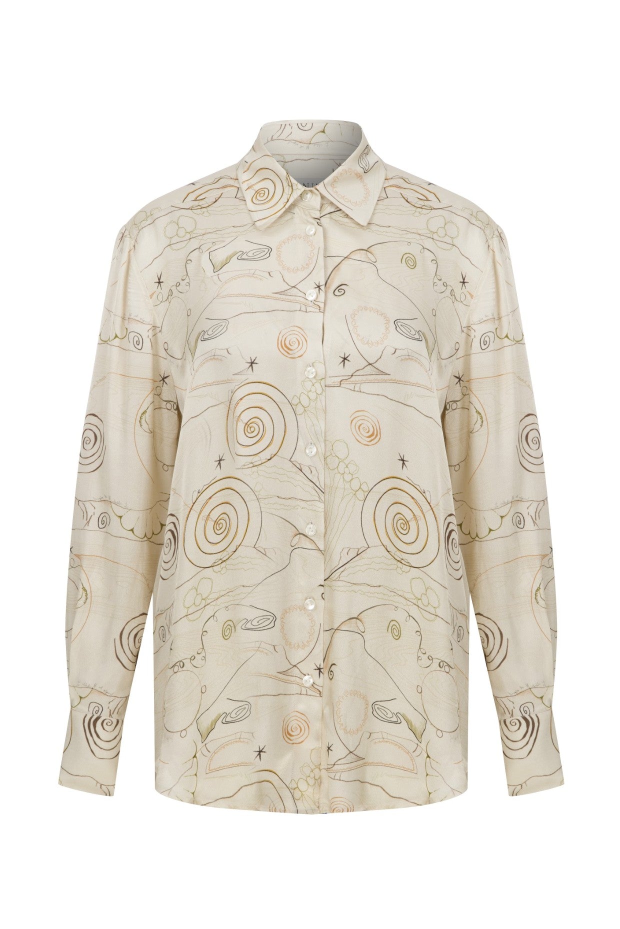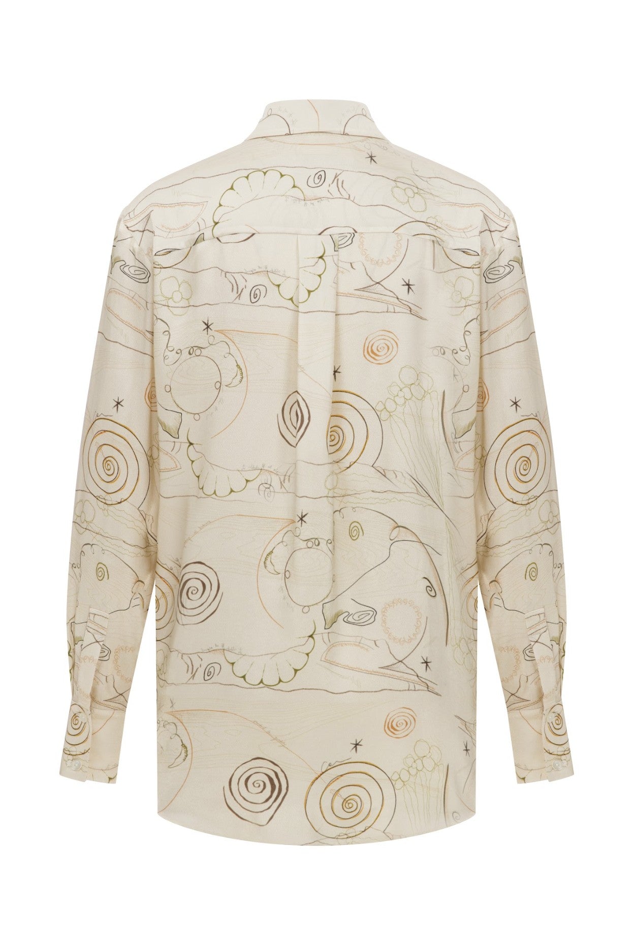 The Map Shirt is crafted from lightweight viscose and features a vibrant multicolor print with a classic button-down front. Its long sleeves and relaxed cut bring together ease and character, offering a bold yet wearable statement piece.