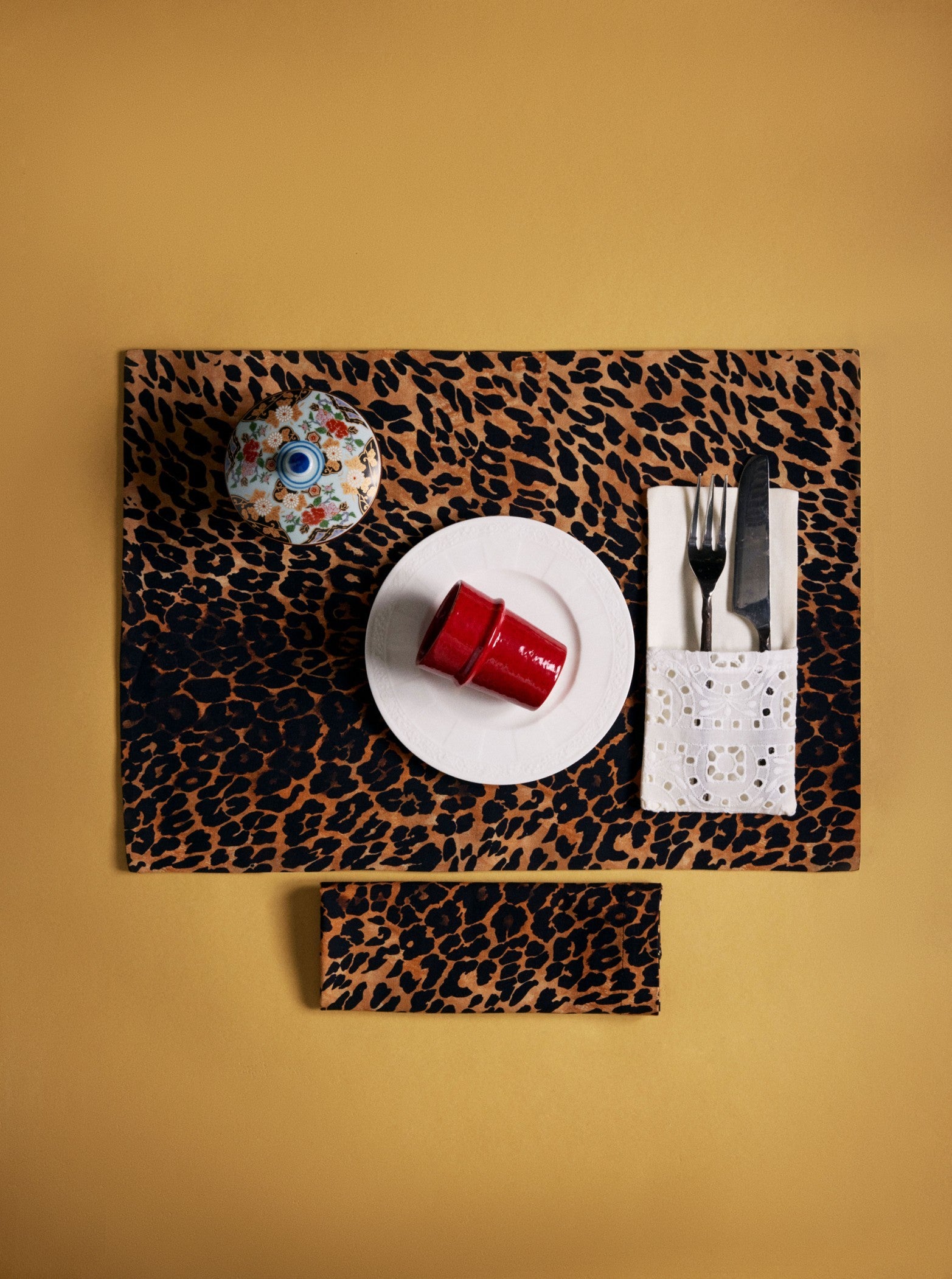 Nyra Placemat captures attention with its striking leopard pattern, turning the dining table into a bold statement. Its lively surface design infuses personality into any occasion, whether relaxed or celebratory. A true fusion of function and character, it elevates everyday rituals.