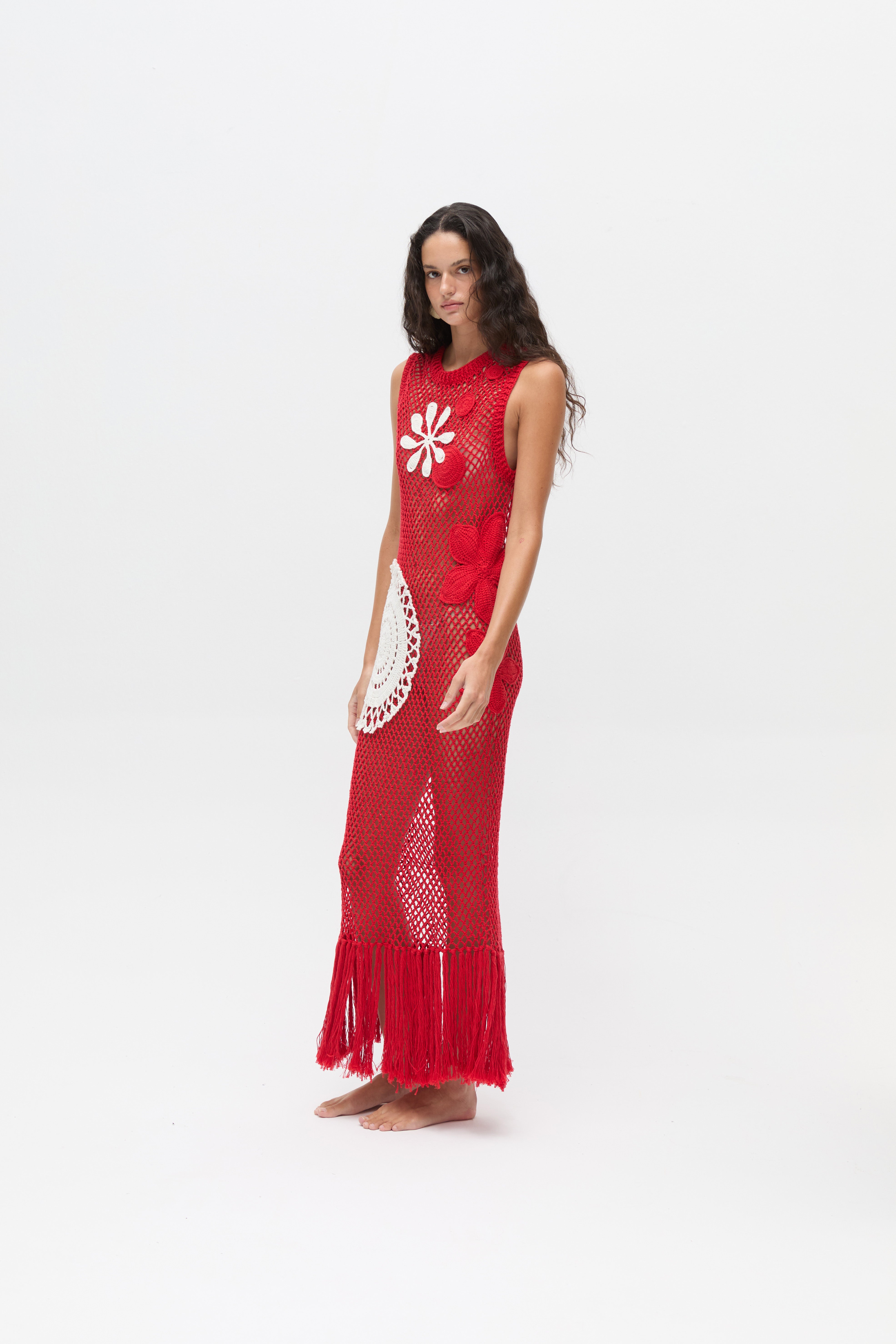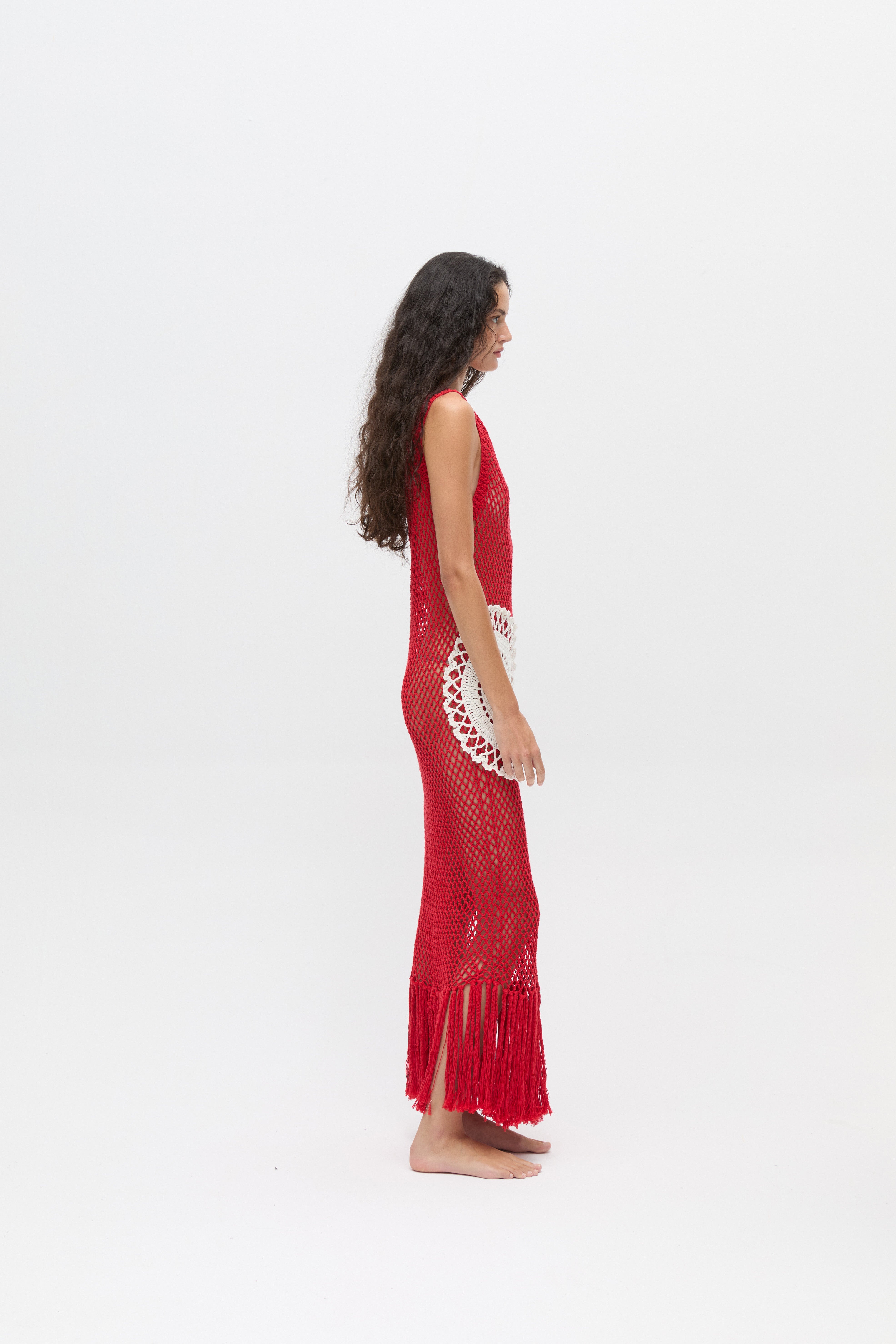 Handmade Crochet Red Maxi Dress
